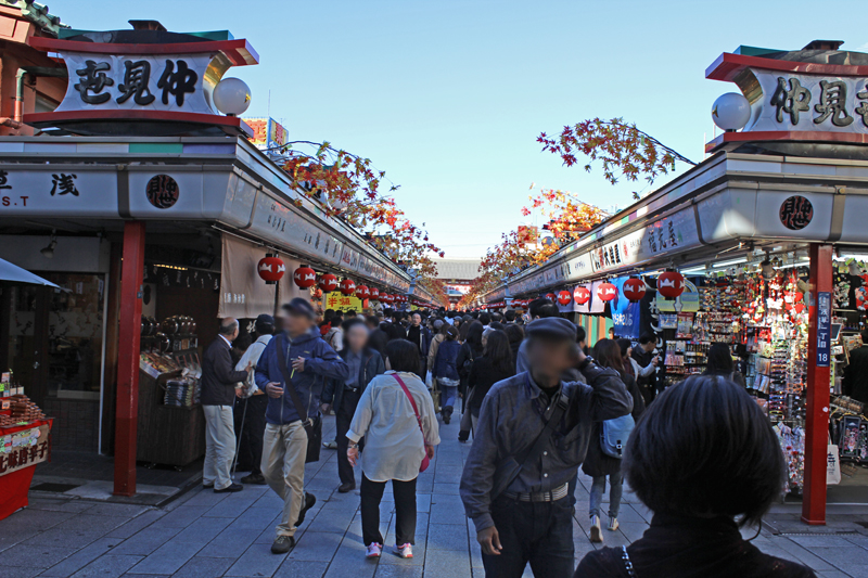 雷門から宝蔵門までの参道が、両側に団子やせんべいなどの食べ物を販売しているお店やおみやげ物やさんなどが立ち並ぶ仲見世通りです。ここは、いつもたくさんの人たちで賑わいますが、あまり買いものはしたことがありません。外国から来た人や、地方から観光に来た人たちが買いそうな感じがしますが。