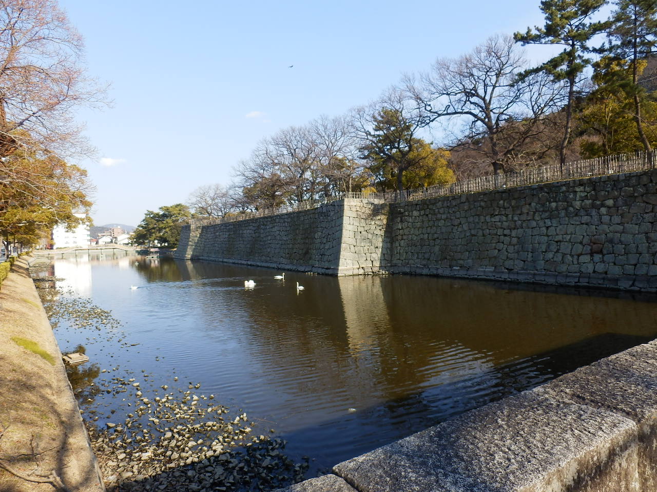 丸亀城のお堀には大き な白鳥