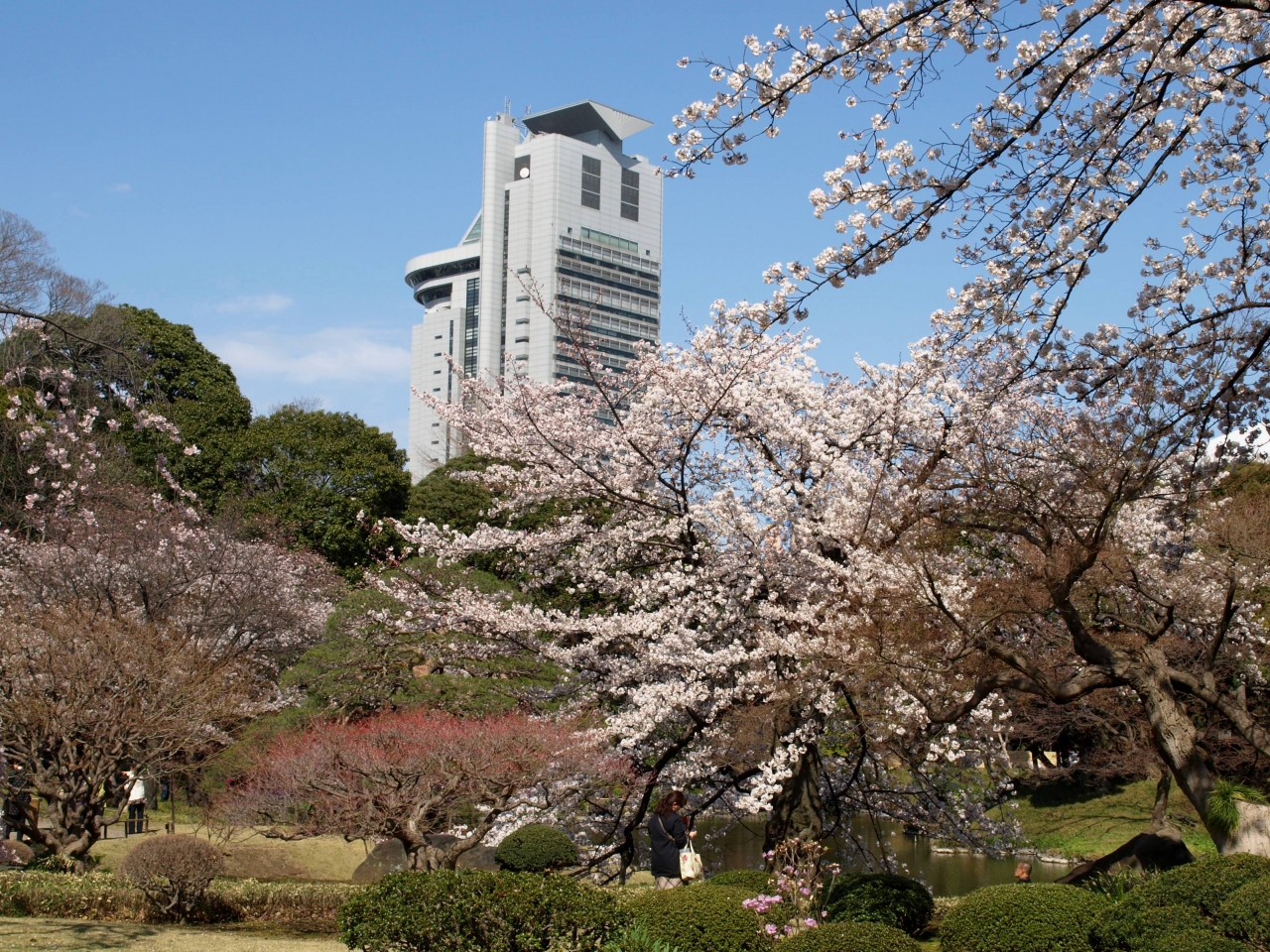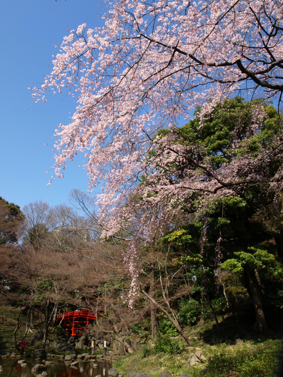 メインの枝垂れ桜はすでに少し盛りを過ぎていましたが、ソメイヨシノを中心に園内の桜が満開でした。とは言え、咲き始めたばかりの紅枝垂れもあり、まだしばらくは楽しめそうでした。