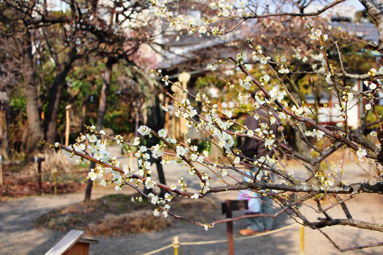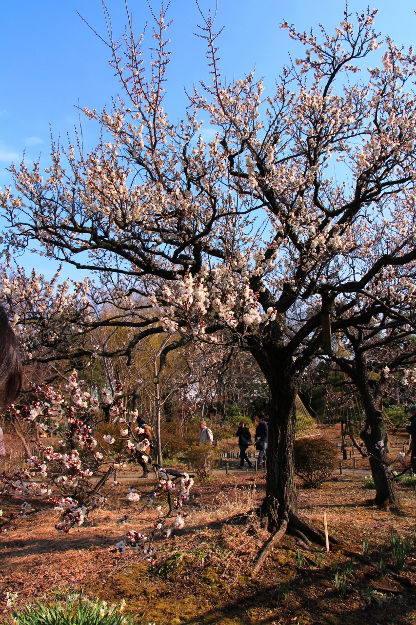今年の梅の花は開花が遅く、向島百花園もようやく見ごろを迎えています。