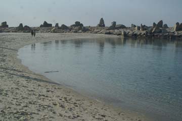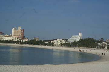 崎の湯の露天風呂に入った後、海岸線沿いに進むと足湯があり、防波堤の先で砂浜に降りると弓なりになった白良浜が続いて、石英の文字どおり白い砂の綺麗な海岸です。夏は海水浴で賑わいますが、この季節は人が少なく、柵があるので何かと思ったらイルミネーションの枠でした。共同浴場の白良湯がありましたが、まだ入る温泉があるので見送ります。