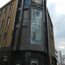 JR松本駅から「松本城」へと向かう途中、川の手前、大通りから、大きな時計がある建物に目がとまりました。