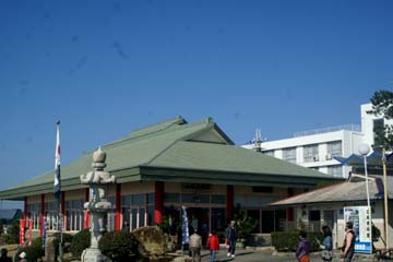 三段壁バス停からみやげ物屋が並んでいる道を下ると三段壁の展望台があり、岩壁の上から海の眺めが開けて、エレベータで下って洞窟を見物できますが、料金1,200円とのことでパスします。建物の横に無料の足湯があります。