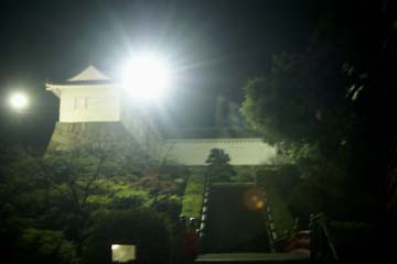 小田原駅に着いて、ムーンライトながらの発車時間まで時間があるので、駅から近くにある小田原城に行ってみます。線路に沿って進むと5分ほどで公園になり坂を上っていくと天守閣があります。昼間は動物園などがあって賑やかですが、この時間は誰も居ません。反対側の門から坂を下るとお堀端に出て、小田原駅に戻る途中に24時間営業の万葉の湯がありました。