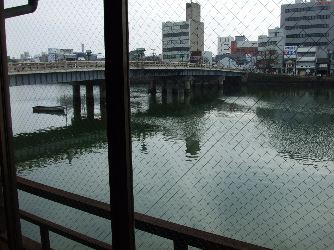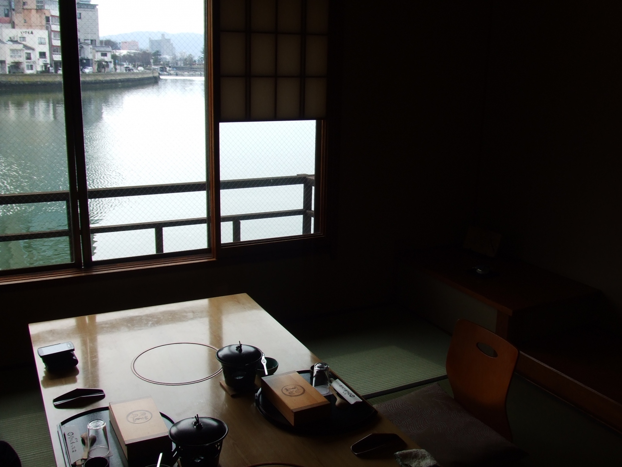 部屋は宍道湖を望む川沿いの2階部分で景色は最高、ゆっくりと食事を楽しむことができました。