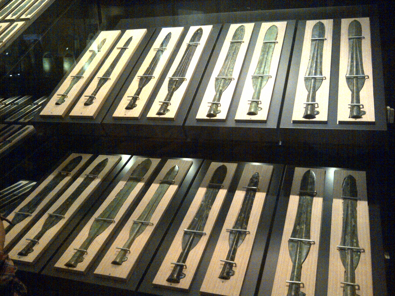 ずらっと並んだ銅剣は圧巻の一言。銅鐸もすごい数です。レプリカですが銅鐸を打ち鳴らすこともできます。