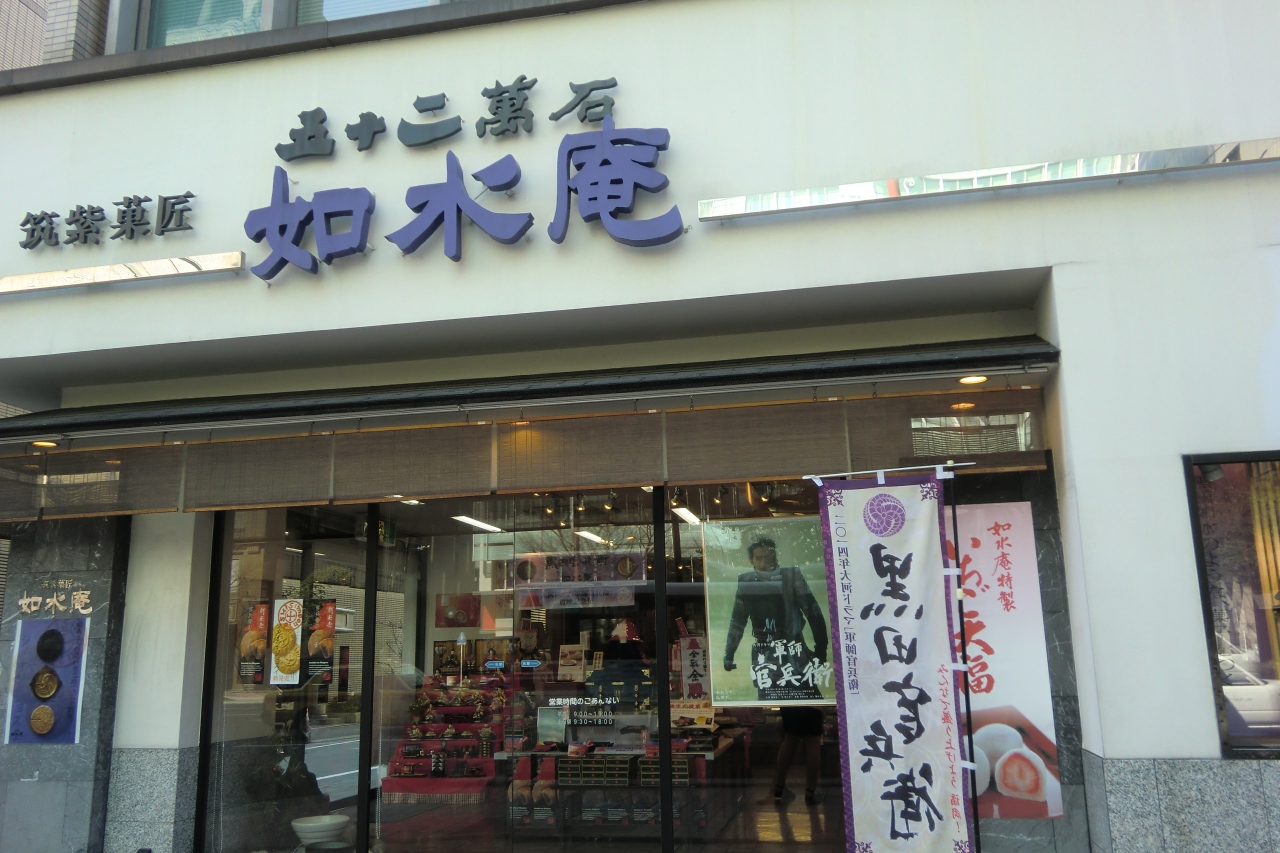 お店の名前は,「黒田如水」にちなんでいるかと思われますが,ちょうど大河ドラマの主役になっていることもあって,店頭には,それにちなんだお菓子が多数売られていました。