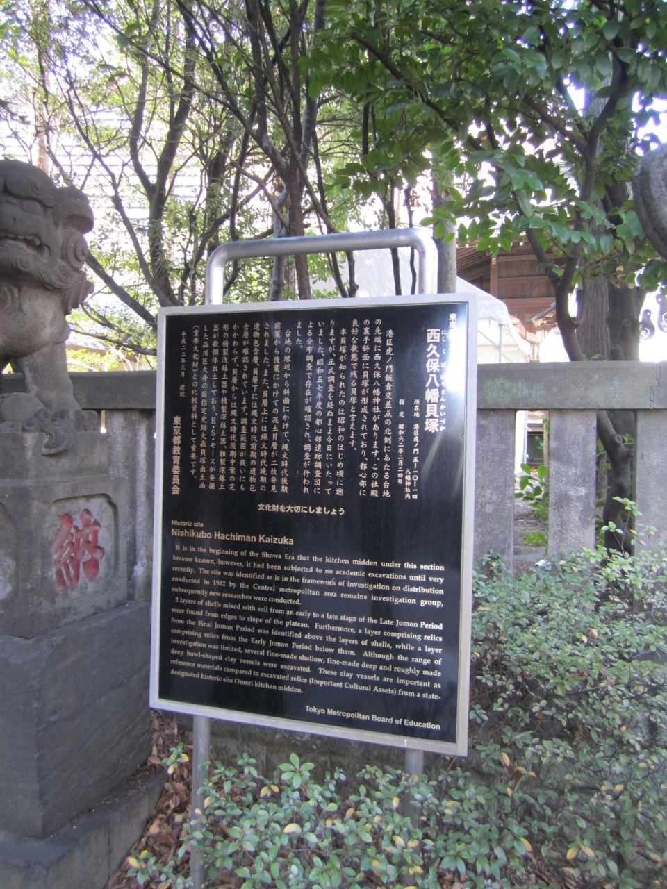 西久保八幡神社 貝塚 は、東京都港区虎ノ門五丁目の西久保八幡神社 の境内にありました。