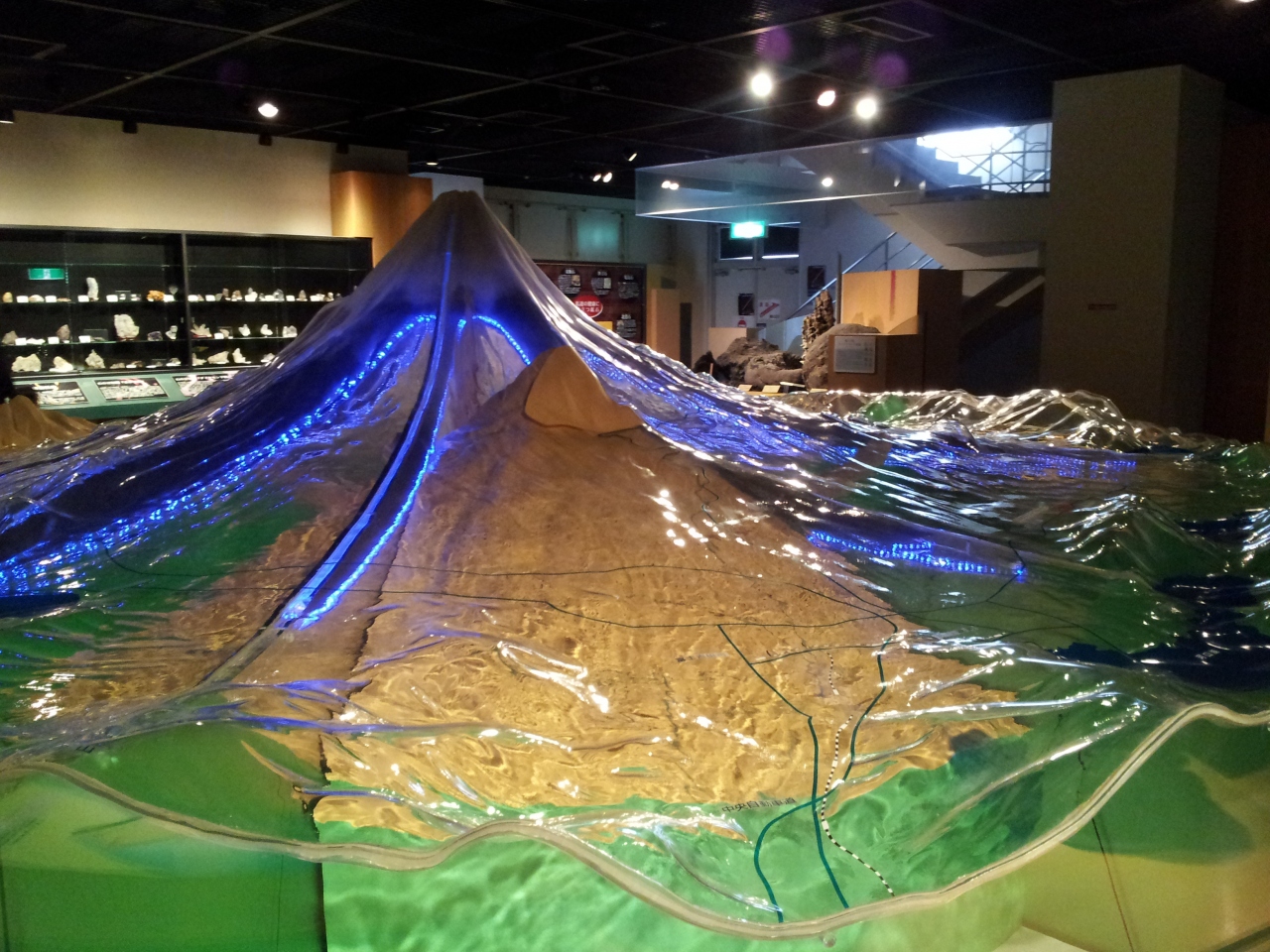 中に入ってみて最終的にここの目的は、アメジストや水晶などの販売?かなと思いましたが、奥に行くと富士山の大きな透明の模型があり、色々とわかりやすく説明があります。