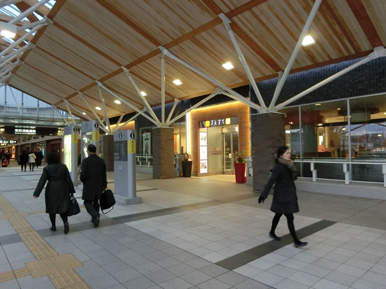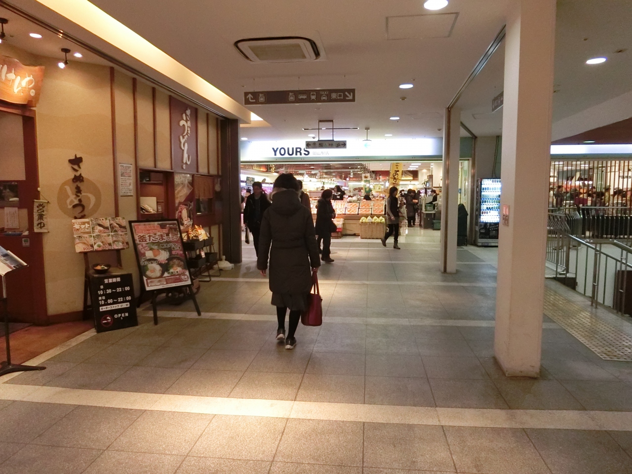 最近開発されて綺麗になった岡山駅の西口と東口を結ぶ2階の連絡通路にある。