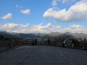 嵐山の町並みをよくみる事ができます。また、空気のきれいな冬などは、澄み切った空と山々を見る事ができます。