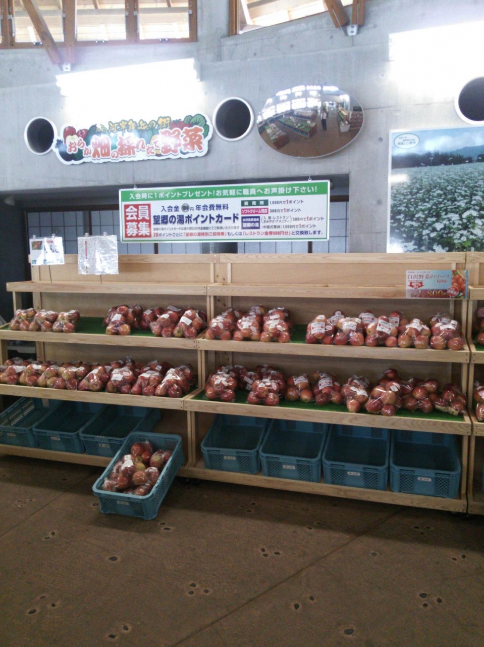 リンゴの産地でもあり、リンゴ、リンゴジュースの販売はもちろん、新鮮野菜なども販売もされていました。