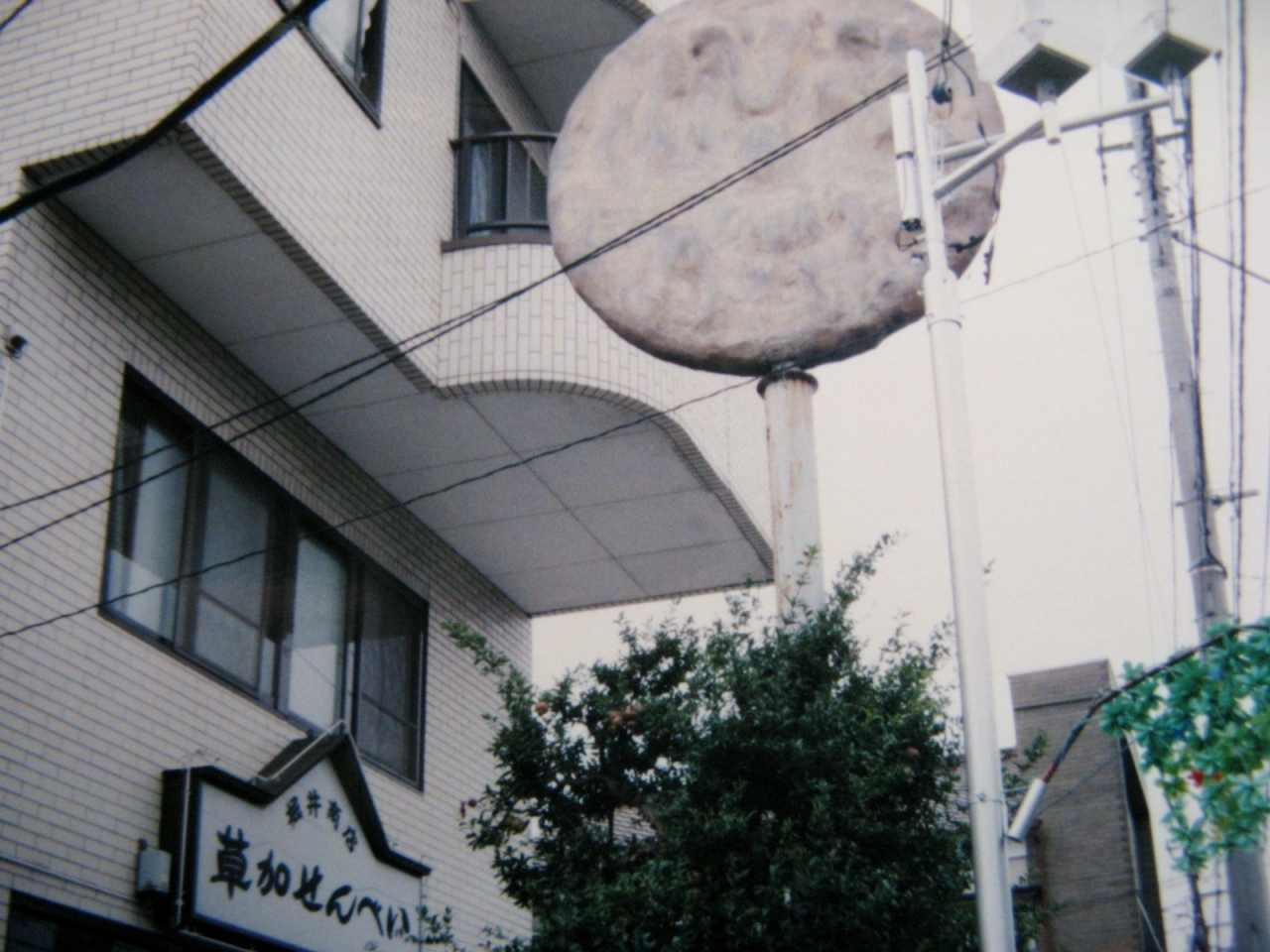 草加といえば、やっぱり、煎餅。旧日光街道沿いに煎餅屋さんがたくさんあります。「堀井商店」さんは、創業は昭和13年という老舗の煎餅屋さんです。醤油煎餅や胡麻煎餅など伝統的な煎餅から現代風にアレンジした煎餅など沢山の商品が揃っています。お店の前には、大きな草加煎餅のモニュメント看板が高く掲げられています。リアルな煎餅の看板の出来栄えが面白いです。