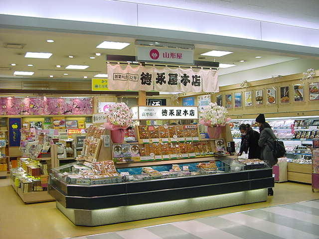 鹿児島空港の2F、出発ロビーにある売店です。周囲にも同じような売店が多く、飛行機まで時間がある人はいくつもの店を見ながら歩いています。このお店はさつま揚げのコーナーが大きく、それ以外の鹿児島土産もたいていのものが揃います。