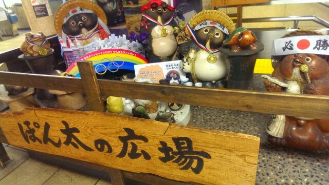 結構大きなたぬきの置物が4体ほど置かれていて、