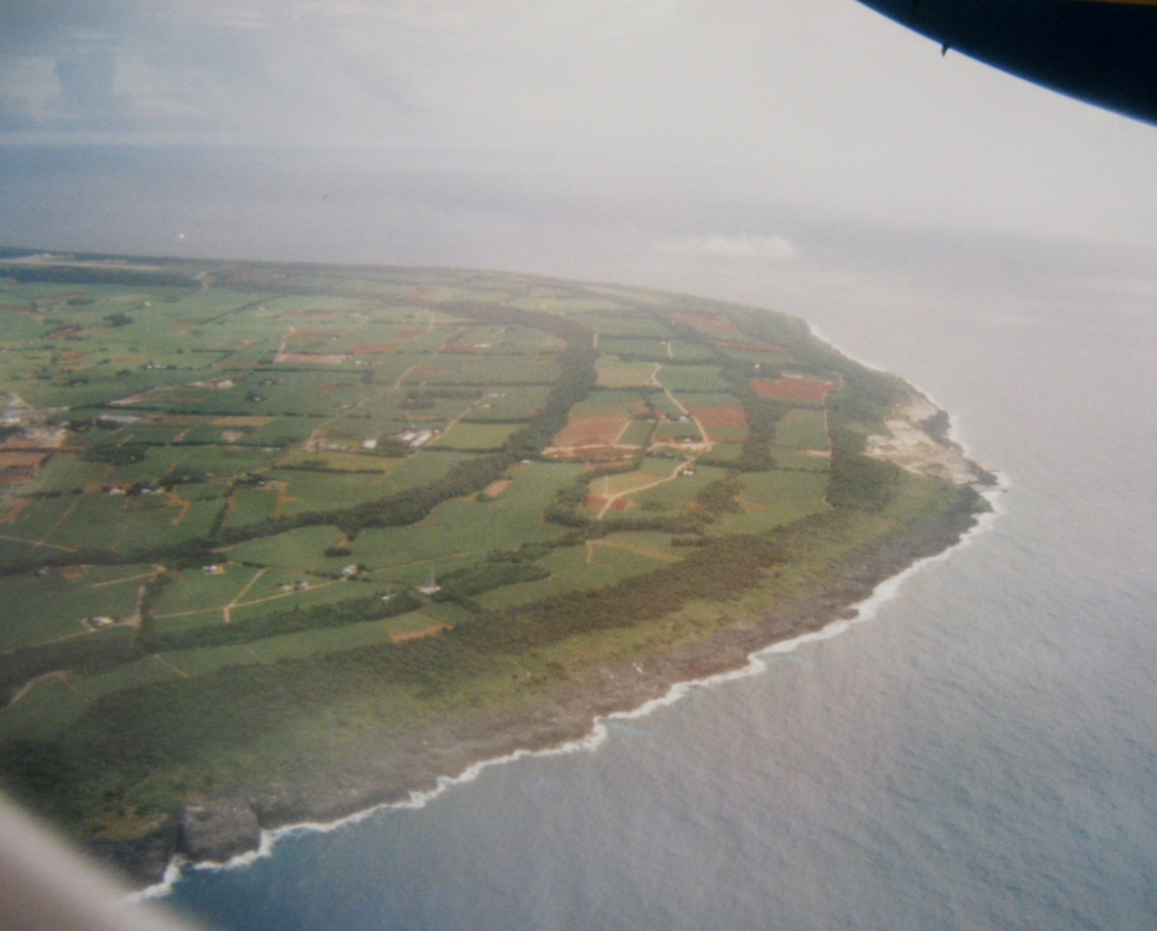 那覇空港から琉球エアコミューターで南大東空港まで1時間ちよっと、那覇から東へ360キロ、まさに絶海の孤島と言う表現がピッタリの島です。旅行会社のオプションツアーを利用したので、島内は“案内人”の方に車で案内してもらいました。島内には公共交通機関が無いので、個人で旅行される方は、レンタカーかレンタサイクルを利用するしかありません。