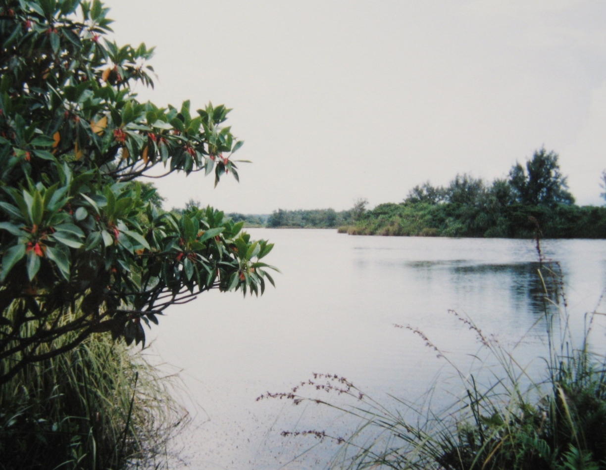 「大池とオヒルギ群落」は、西港から車で約 5分、大東島の中央北部にあります。周辺は大小の湖沼が点在し、その中で最も大きな淡水池が「大池」です。大池の北端周辺にある湿地帯には、オヒルギが群生してます。オヒルギは本来、淡水と海水が混ざる汽水域で観られるものですが、このように内陸部に分布する事は大変珍しいそうで、学術上価値が高く国指定の天然記念物に指定されています。