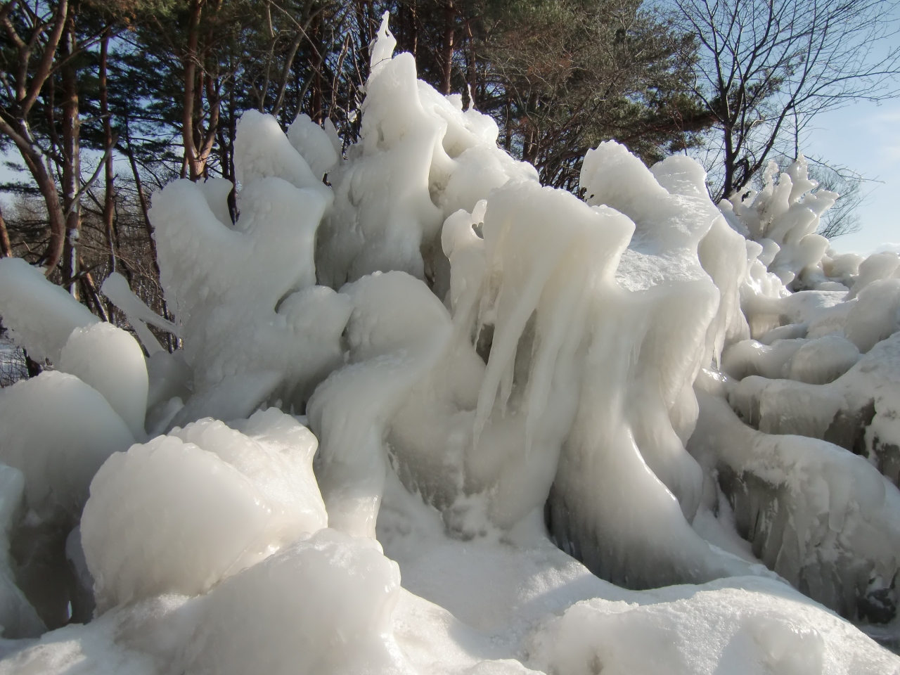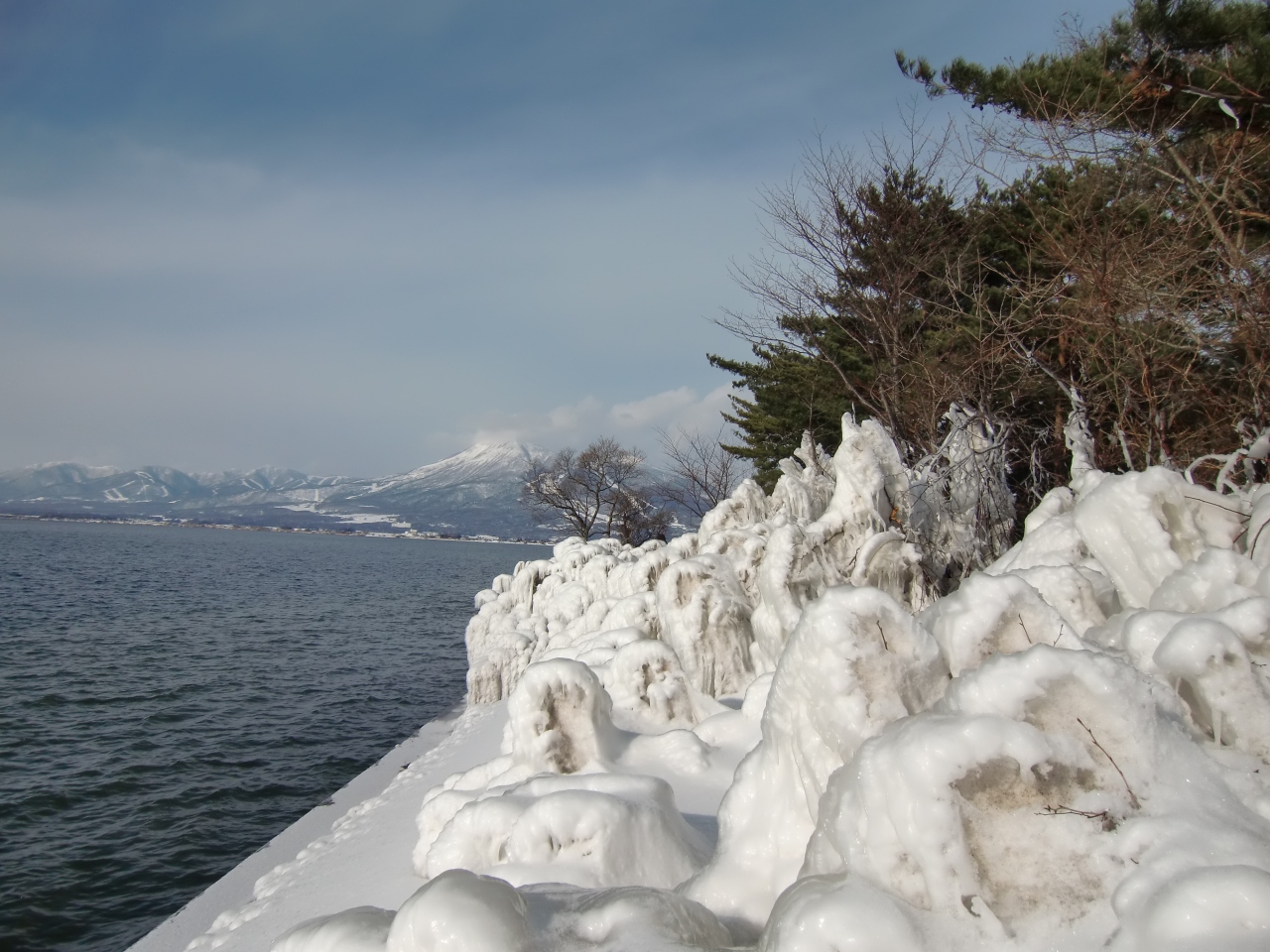 猪苗代湖の西岸、天神浜の南で冬の一時期だけ現れる「しぶき氷」を観るために訪れました。