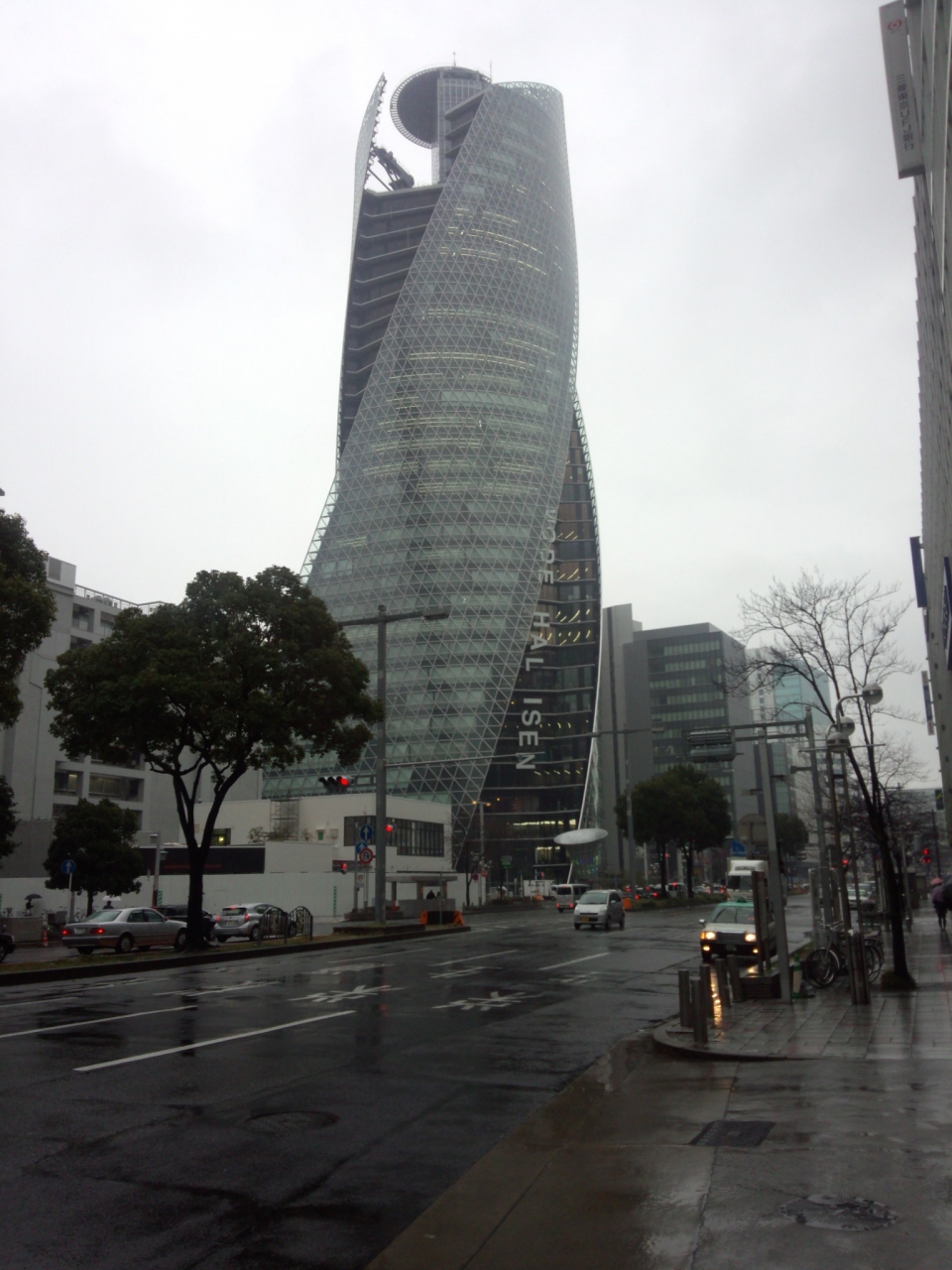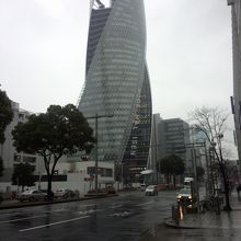 名古屋駅の南にあり、人目を引くような斬新なデザインの建物。ひねりながら天を突く、近未来的な建造物です。ビルに貼られた三角形のガラスは、すべてが少しずつ形が違うそうです。