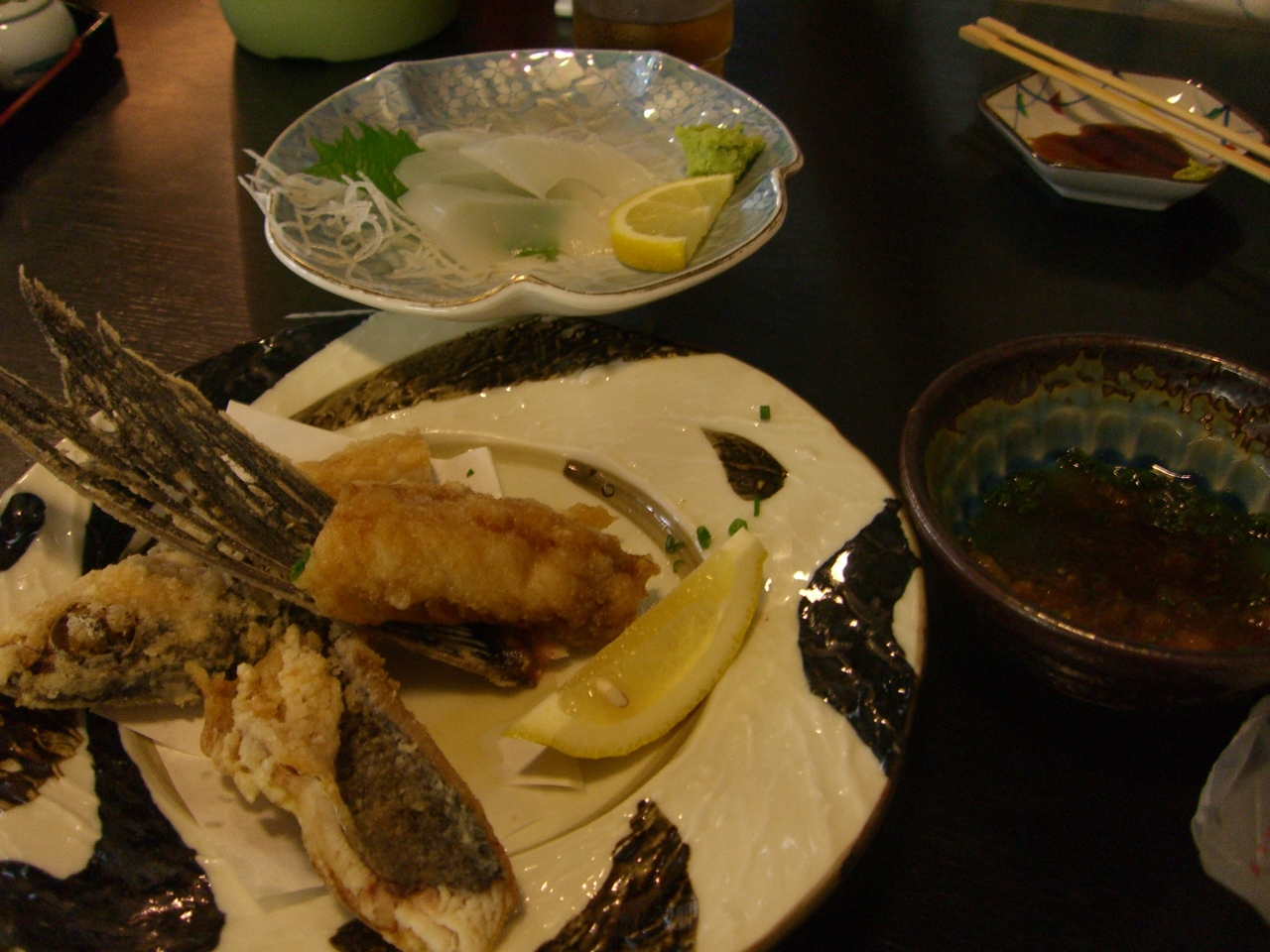 宮之浦に泊まったときに歩いていける便利な場所にある食事処で、屋久島名物のトビウオのから揚げなどが食べれます。ただ、近くにあまり食事場所がないためか、とても混んでいて1時間近く待ちました。私達もレンタカーも返してしまい、他に行く元気もなく、待ちましたが、次の日早い起床だったので食事を食べ終えると遅い時間になってしまったのは計算外でした。予約したほうがいいと思います。味は普通でした。