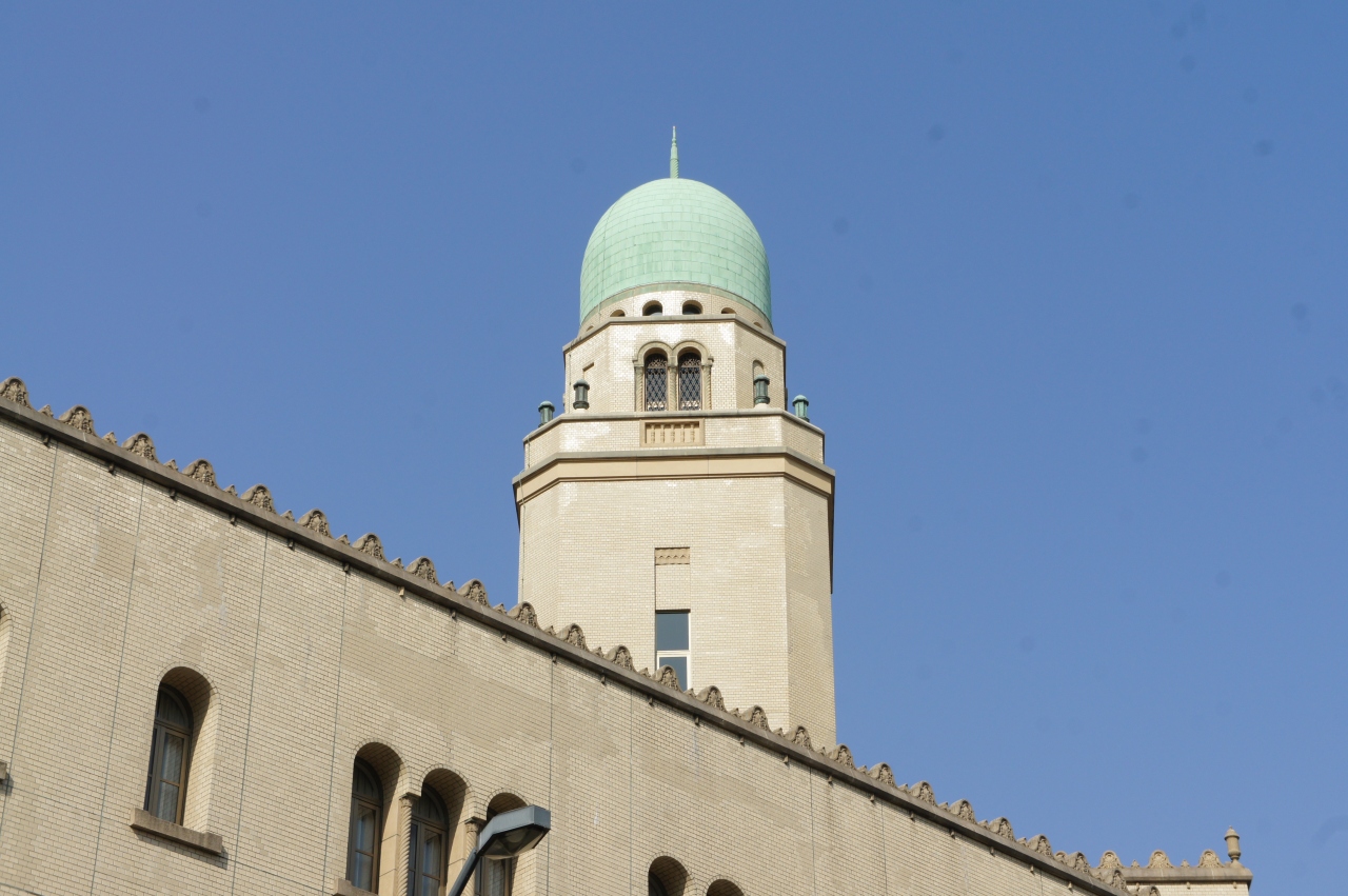 5階建ての庁舎の上に備え付けられたイスラム寺院を想わせる緑青色のドーム。昭和9年に作られたものです。