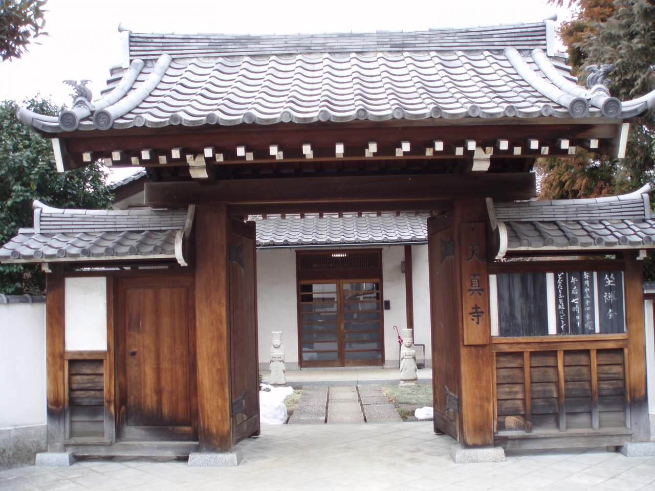 東京メトロ南北線に乗って麻布十番駅1番出口よりパティオ通りのきみちゃん像を大黒坂、一本松坂を直進し仙台坂上交差点を渡り麻布運動場から細い通りに天真寺と刻まれた古い石標識が在り臨済宗大徳寺派仏陀山天真寺があります。寛文元年(1661年)創建。江戸後期の代表的名君と言われた茶人大名松江藩主松平不昧とその子月潭に関する遺品が多いそうです。