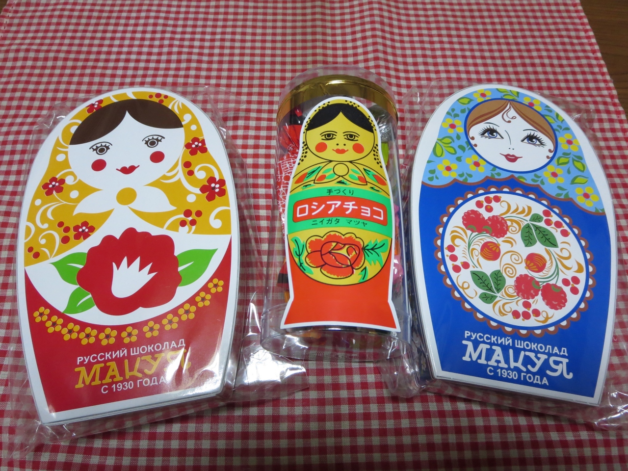ロシア旅行に行った話をしたら、新潟市に住む友人がこちらを教えてくれたのですが、本人も行ったことがないらしく…。日曜祝日がお休みとのことでなかなか立ち寄ることができませんでしたが今回たまたま土曜日に新潟へ行く機会があったので、ぜひ行ってみようと思い地図を片手に訪ねてみました。外観はネットで見たまんまですが、店内は思ったより小さく、2~3人入るといっぱいになりそうな規模でした。お目当てだったマトリョちゃんパッケージの詰め併せ(¥1,280)とロシアンケーキ6種を購入。マトリョ箱は想像通りとてもキュートでした。本物のマトリョーシカやロシア小物も飾られていて見ていても楽しいです。本物マトリョに入ったチョコギフトもありました(¥3,000)。あと、チョコと焼き菓子のみならず生菓子のロールケーキやチーズケーキ、エクレアなどもありました。どれも素朴でおいしそうでしたが評判のエクレアがラッキーなことに1個だけ残っていた!シュークリームと1個づつ購入しました。味の方も甘みが少なく、クリームがたっぷり入っていて見た目よりもボリュームがあり大満足でした。