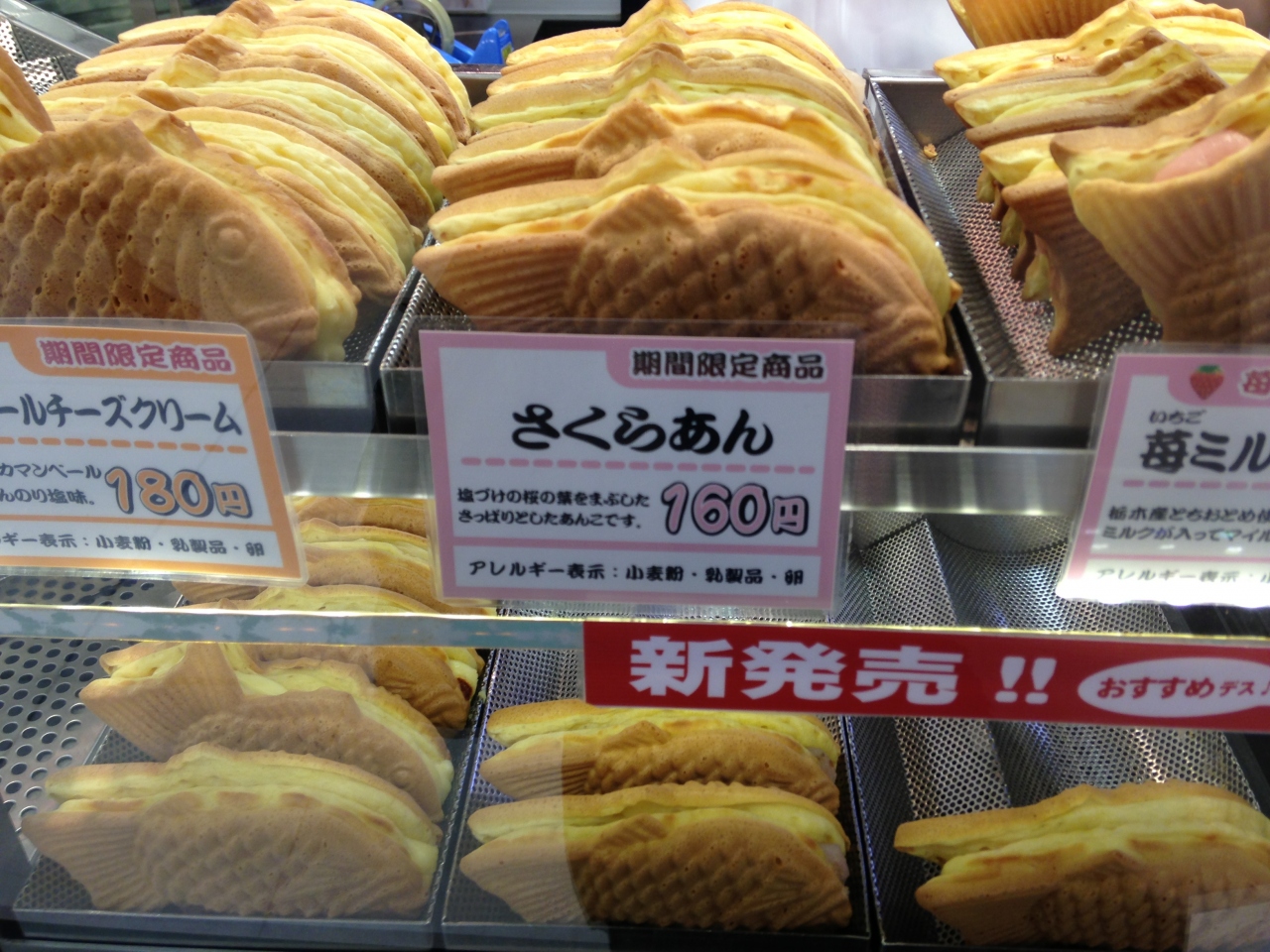 いちごミルク、紫芋、くりこ餡、カスタードを購入しました。家族で少しづつ食べました。紫芋あんが甘くて一番おいしかったです。お店の人から温めると色が変わるけれど問題ないと言われましたが餡子のふちが緑色に代わりましたビジュアル的に怖いですが、凄く美味しかったです。