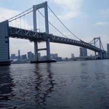 首都高速、一般道、ゆりかもめの3本が通る、都心からお台場方面へ行く為に、東京湾を横断する橋です。