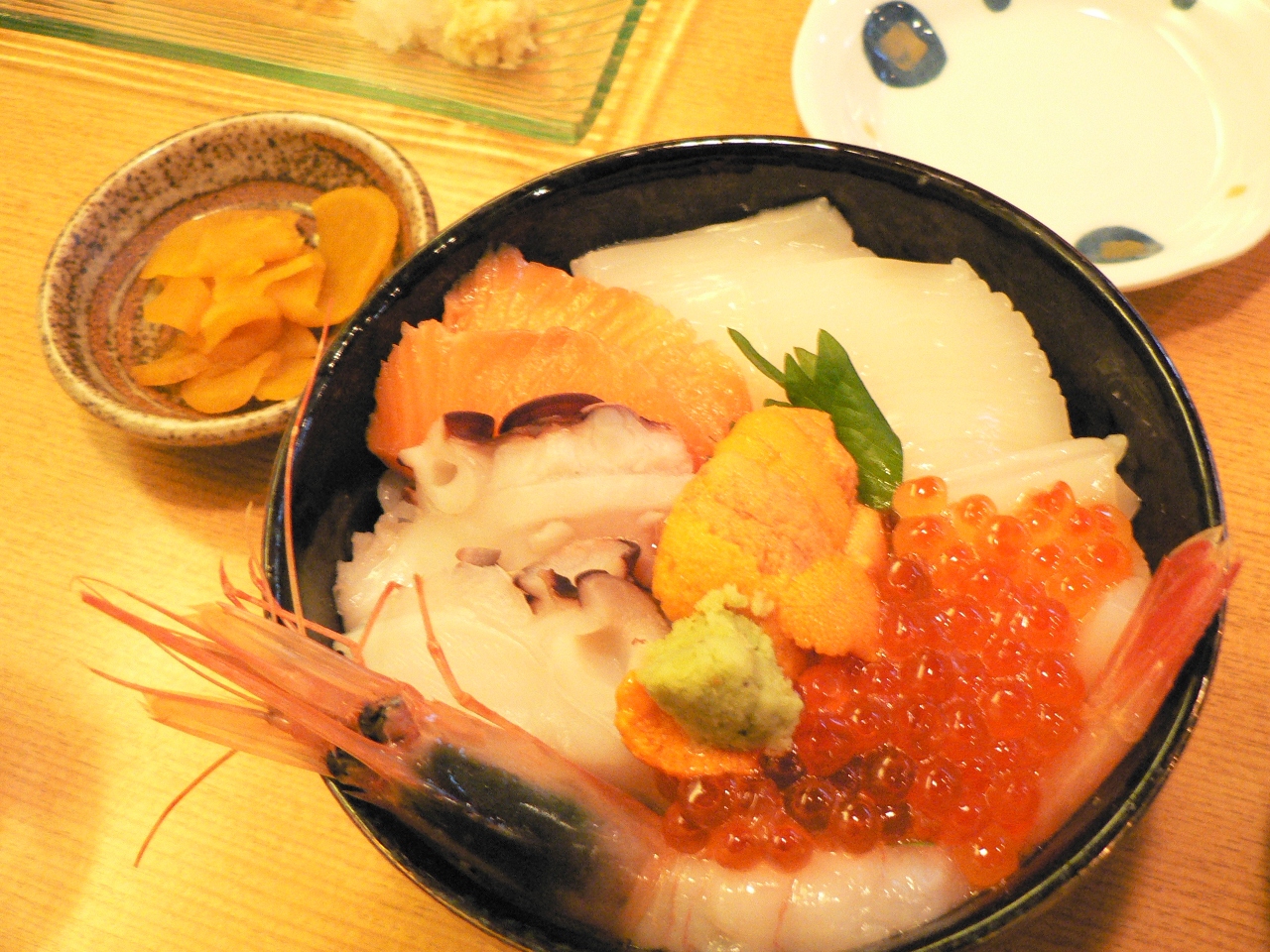 函館朝市の近くにあります。大きな看板がでているのでわかりやすいのですが、いろんな店がたくさん近辺にあるので少し探しました。店の中に入ると、水槽の中でイカなどが泳いでいました。ウニ丼も、豪華海鮮丼も、イカそうめんも新鮮でおいしかったです。観光客が入れ替わり立ち替わり来店していました。