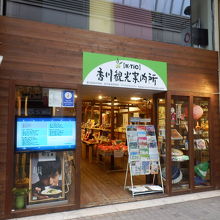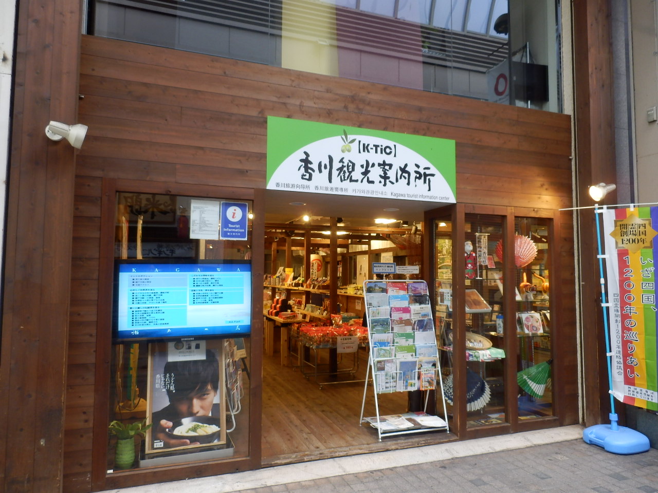 瓦町駅から続く常盤町商店街の終点近く、南新町商店街とぶつかる辺りにある小さな観光案内所です。店先には香川県内の観光地のパンフレットが置かれているので、高松から別の都市へ行く予定の人はここ でパンフレットをもらうと良いと思います。また、並んでいるお土産は町中ではあまり見かけないものも多くて、つい買ってしまいました。