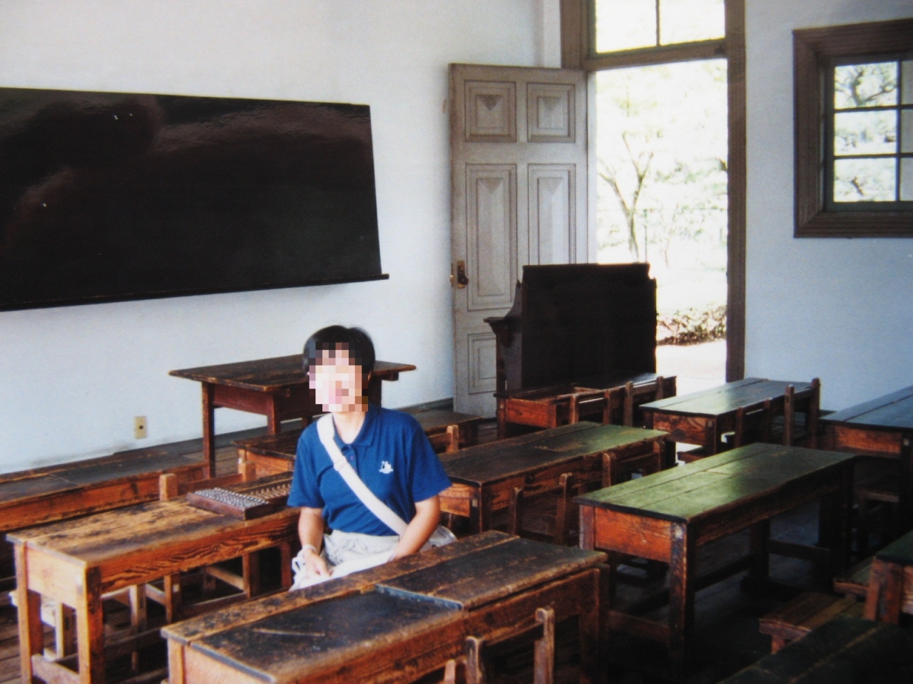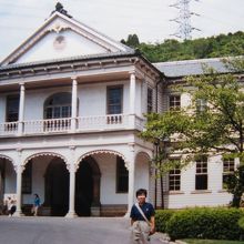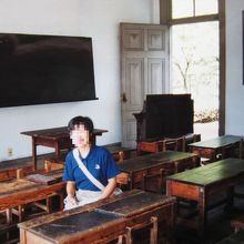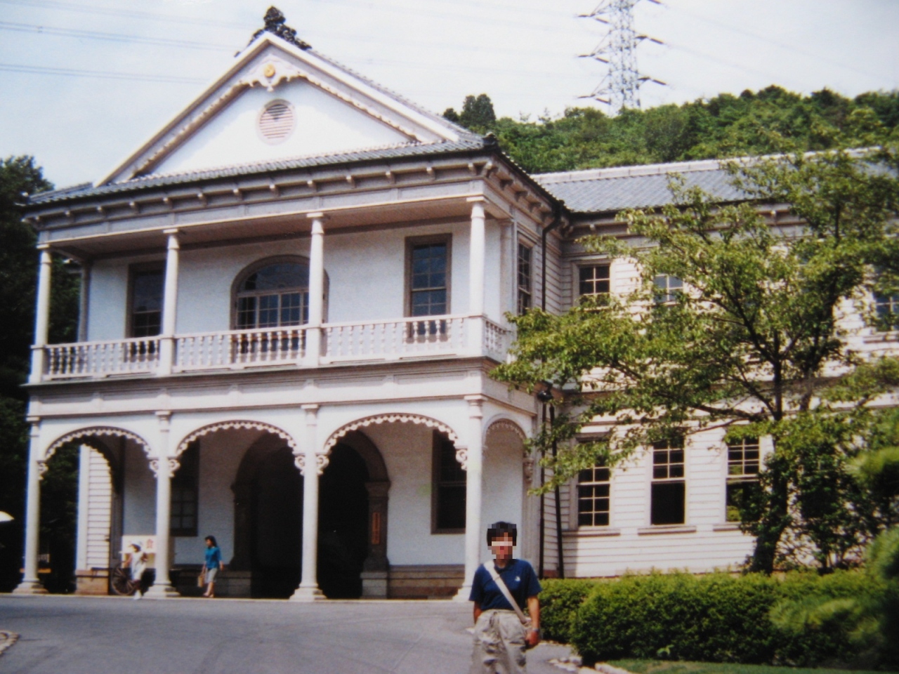“明治村”の正面入り口から入って右側、すぐに見える大きな建物です。明治21年に三重県の尋常師範学校本館として建てられたが、昭和3年に名張市の蔵持村に売却・移築され、蔵持小学校として使われていたものです。建物内の教室には小さな木製の椅子と机が並べられ、古いオルガンなどもあり、壁には小学生(今の)が書いたと思われる絵や習字が貼ってあって昔の雰囲気を出していました。