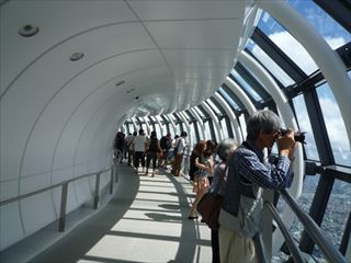 東京スカイツリー (とうきょうすかいつりー)の地上350mの「東京スカイツリー天望デッキ」フロアです。ここでは、多くの方が色々な思いを持って、新たな発見のできるそんな場所です。おすすめは、自分の家の方向や学校とか、ぜひ、一度、行ってみてください