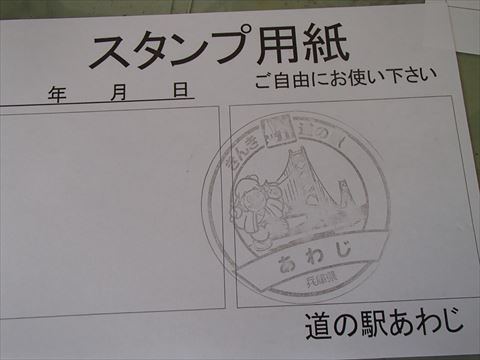 道の駅 あわじ (みちのえき あわじ)は、兵庫県淡路市岩屋に有ります。来場記念のスタンプが有り、デザイン性豊かで、当然、橋をデザインしています。ぜひ、一度、かわいらしいスタンプを押しに、道の駅に行ってみてください