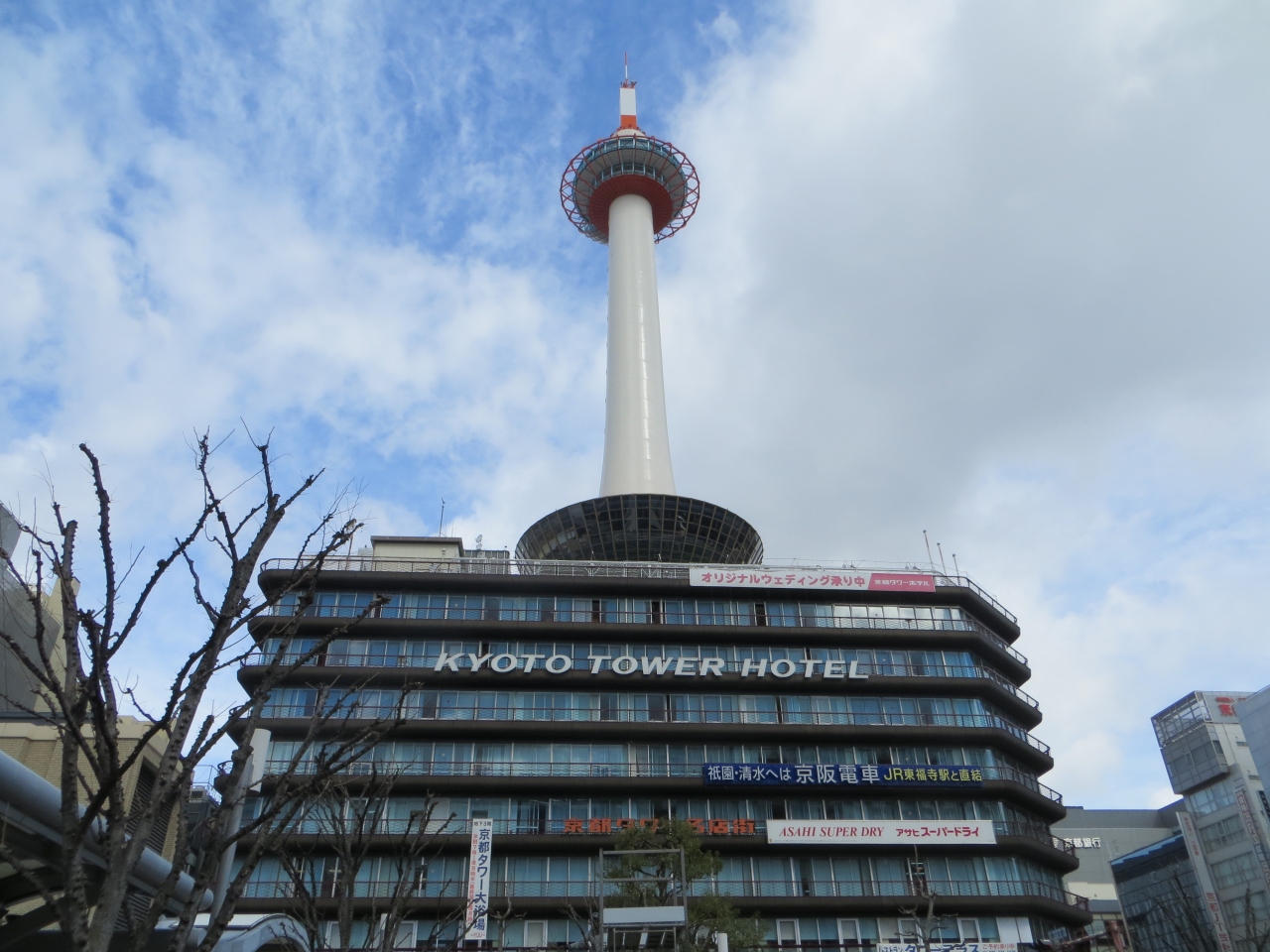 京都タワーはJR京都駅・烏丸口を出ると高々とそびえて立っている京都にはちょっと似つかない物体です。が、京都市内あちこちから見渡せて夜にはライトアップされ、ガン撲滅キャンペーンの時などは紫色に点灯されたりします。京都の象徴とも言えるスポットの一つです。