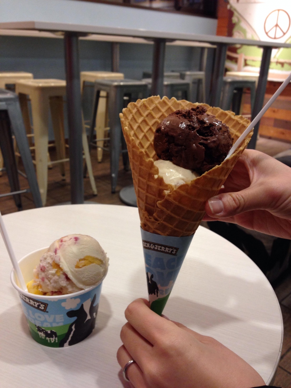 二人ともダブルにして、友人はカップでしたが私はコーンにしました。