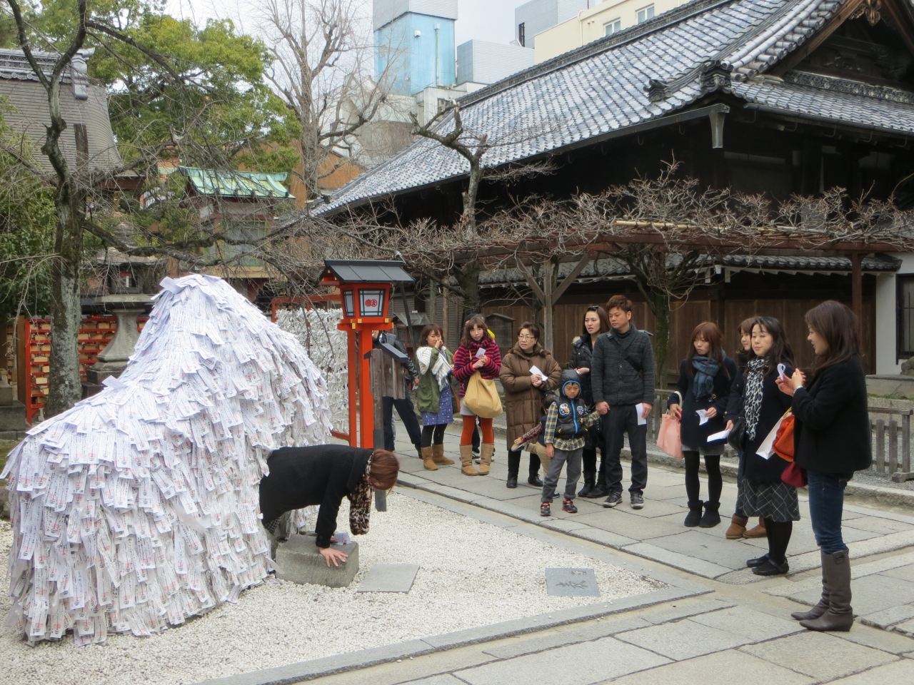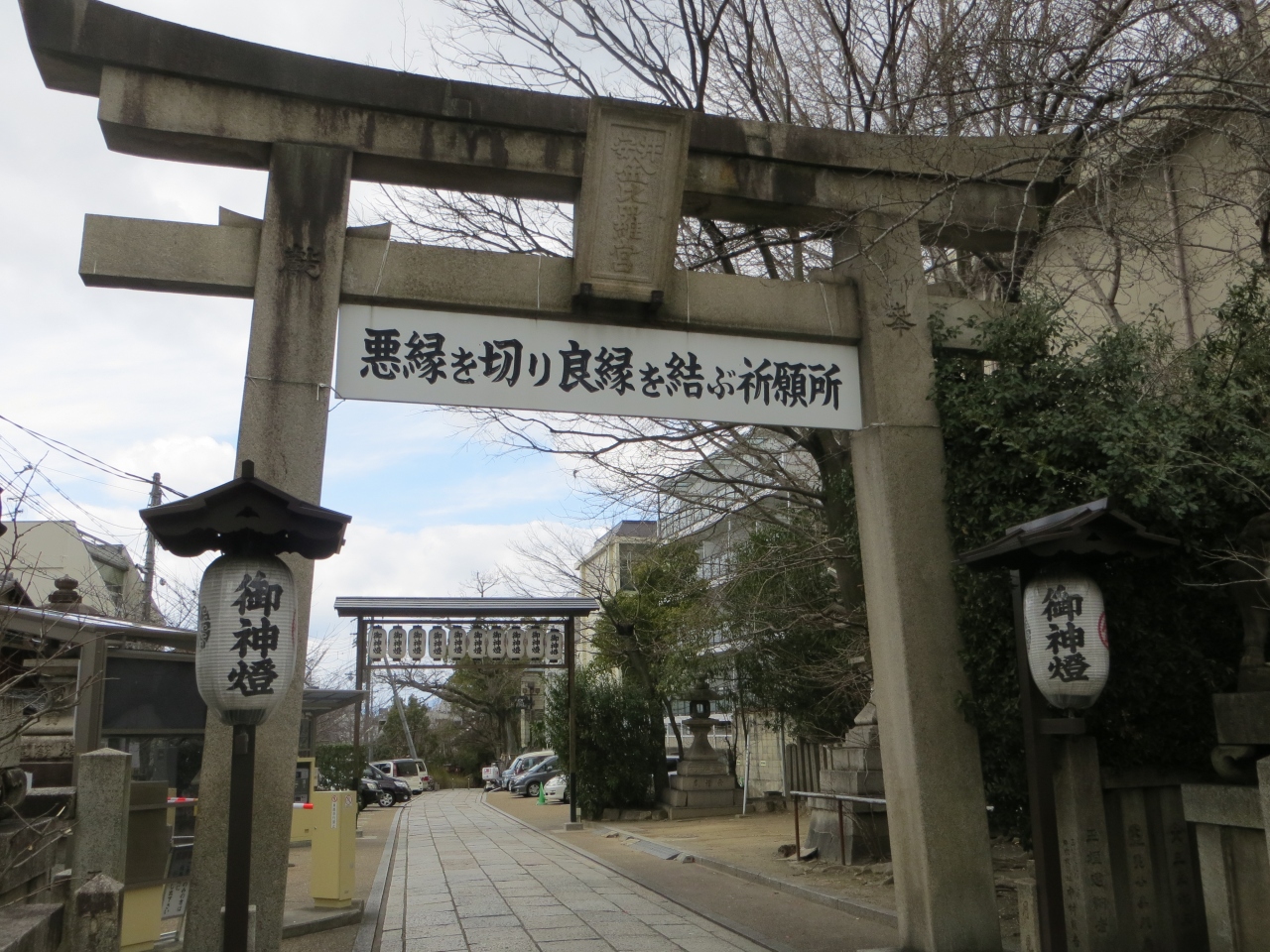 安井金比羅宮に行きたくて六波羅蜜寺から松原通を東へ坂を上って東大路へ出ました。少し北へ進むと鳥居があって参道を西へ向かうとありました。このあたりは風紀があまりよろしくないようです。境内では平日なのに多くの男女が並んでいました。御札が沢山貼られた縁切り縁結びの碑をくぐるのを列を作って待っていました。驚きです。