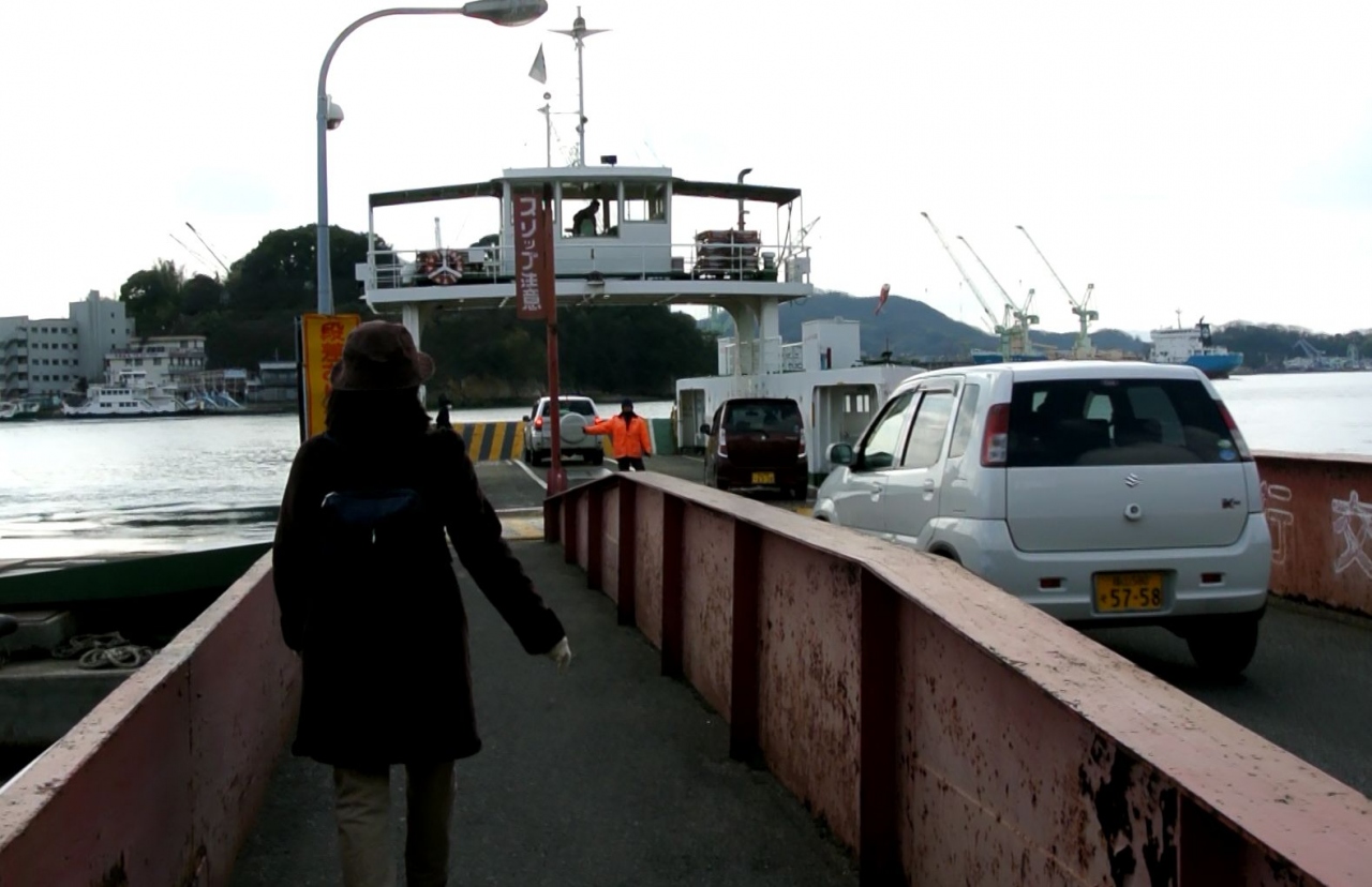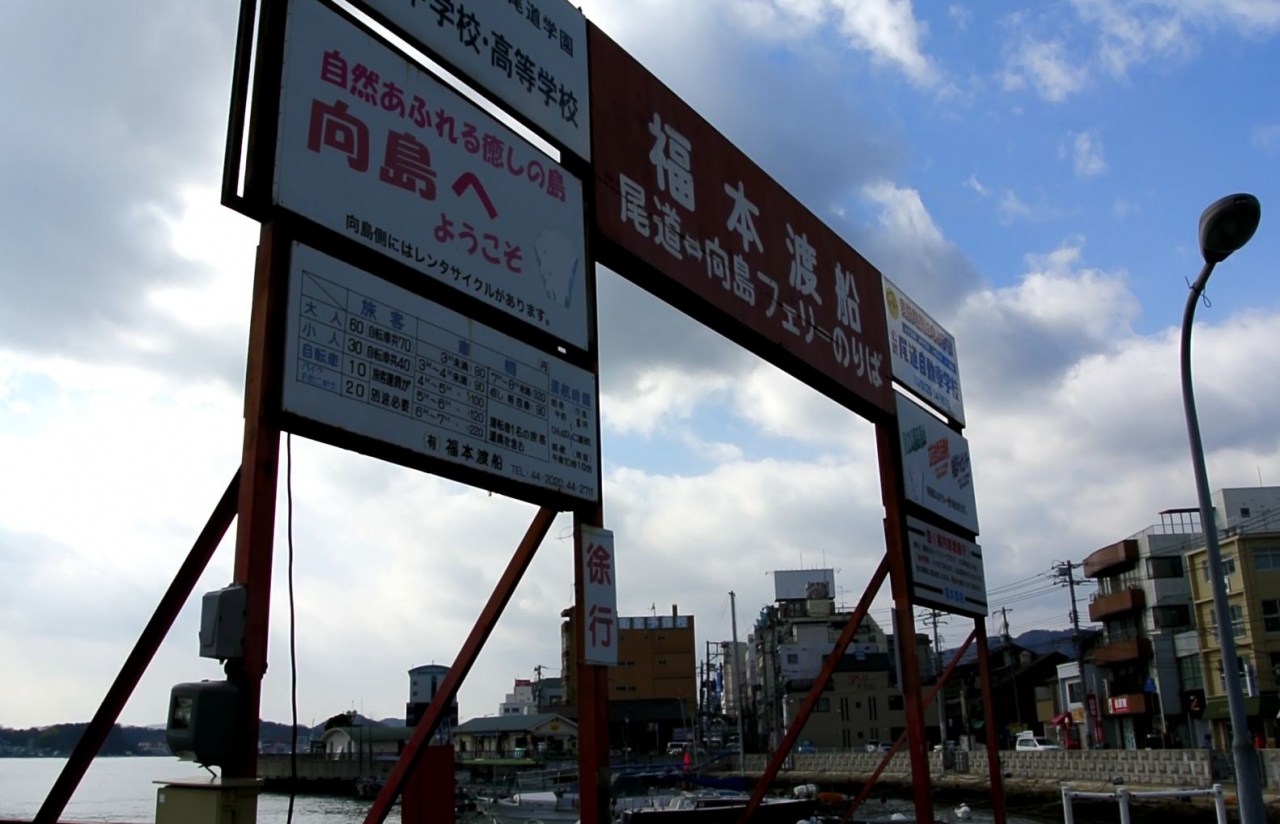 駅前から出る福本渡船、ロープウェイ乗り場に近い尾道渡船