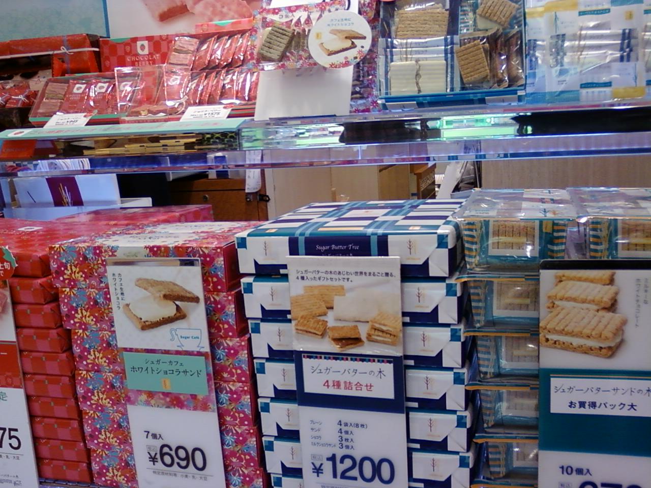 ここのシュガーバターの木は、JR品川駅の駅構内にあるエキュートの中にあります。結構隅の方なので分かりづらいですが、シュガーサンドを知っている人はここを目指して来るという感じでしょうか。挟んであるクリーム(ショコラ、ホワイトショコラなど)によって異なる味を楽しめます。ご進物用のボックスのサイズがいろいろと選べて便利です。