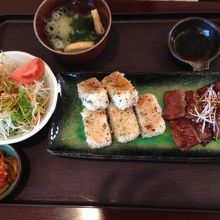 牛カルビ焼おにぎりセットと和風ハンバーグステーキを注文しました。