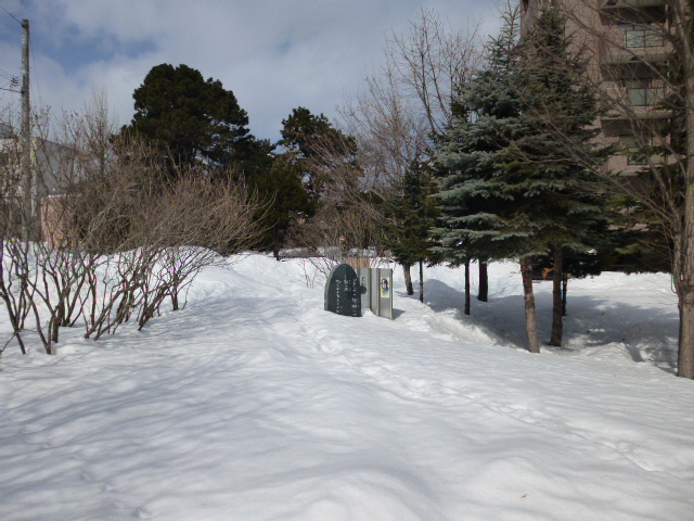 「偕楽園緑地」も一面の深い雪に覆われ、僅かに石碑が顔を覗くだけでした。