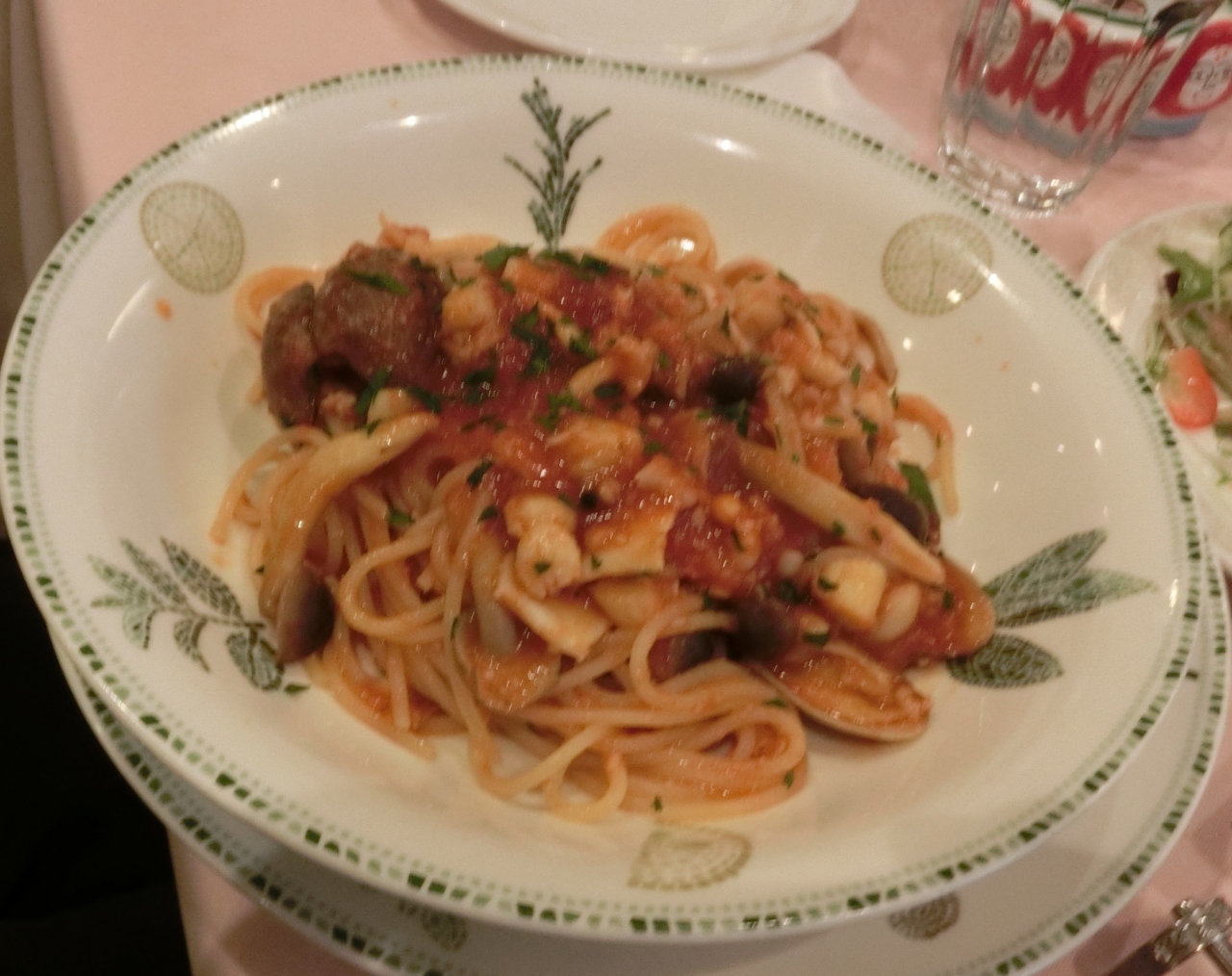 私と義姉はスパゲティランチのシンプルなセットでサラダと飲み物が付いて980円。私は海の幸とキノコのスパゲティをチョイス。
