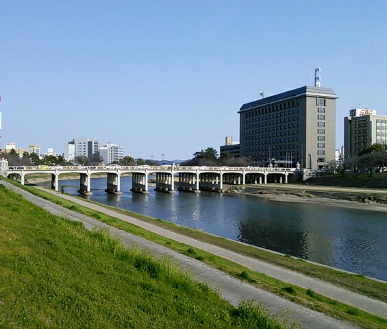 橋からの眺めはよく乙川の河川敷や岡崎公園、岡崎城も見渡せます。ただ渡るだけではもったいない、橋の上で立ち止まって風景を楽しむのもいいと思います。