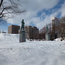 ホーレス ケプロン像は、そんな大通公園の西端に近い位置にあり、近くには黒田清隆があります。