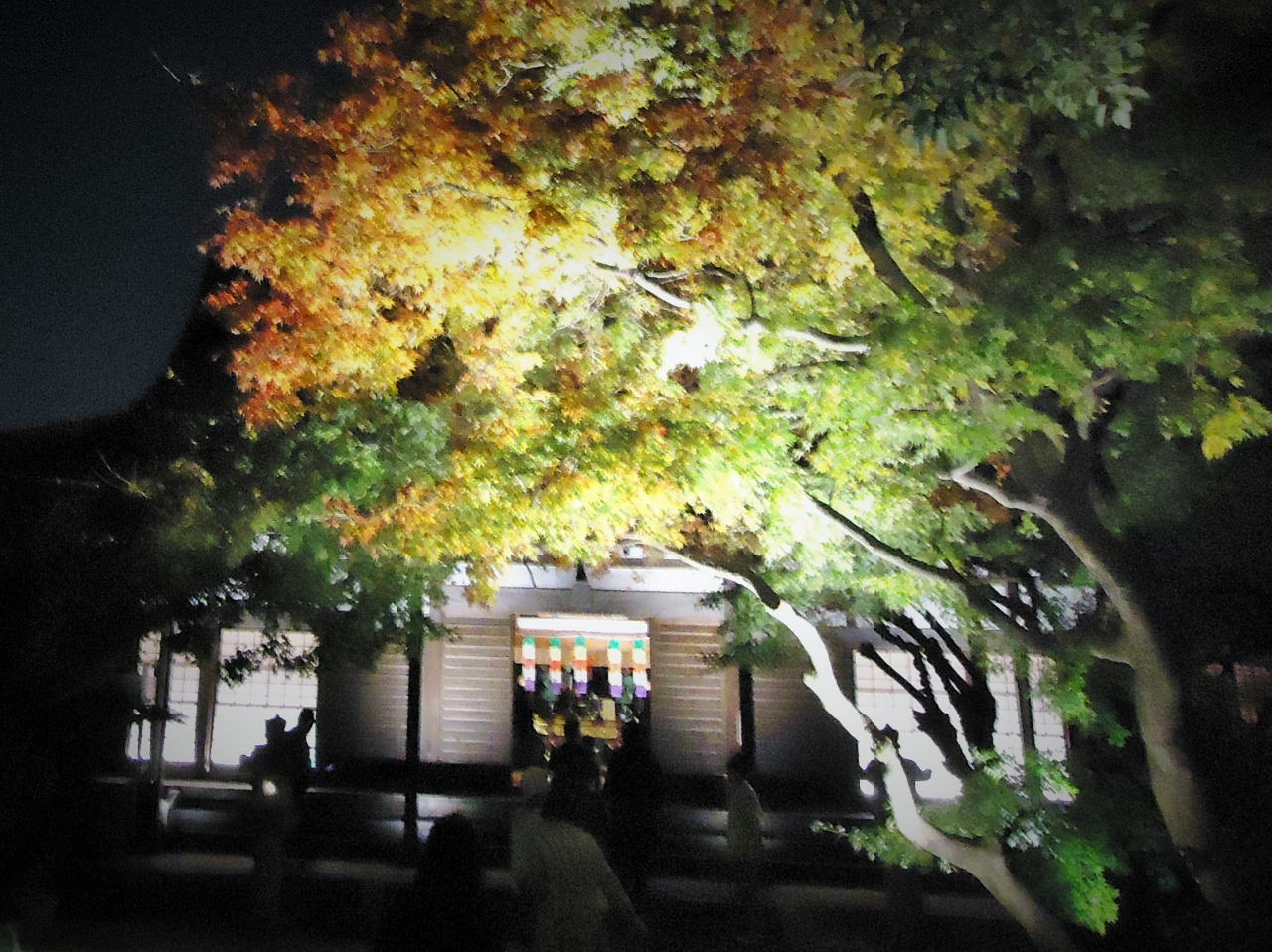 風情ある山門をくぐると、青いやわらかな光で本堂が浮かび上がります。