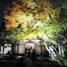 こちらは白砂のお庭が綺麗です、モミジや巨石が効果的にライトアップされ美しいです。