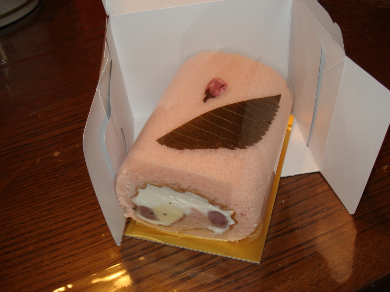 私は今回は季節先取りで「桜のロールケーキ」購入。840円。
