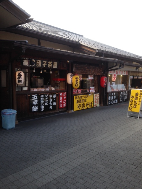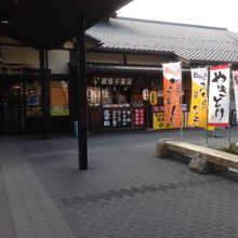 日本昭和村がすぐ近くにあることから、レトロな雰囲気を出しているサービスエリアでしょうか。建物外には屋台風の売店が数軒あり雰囲気が良いです。