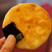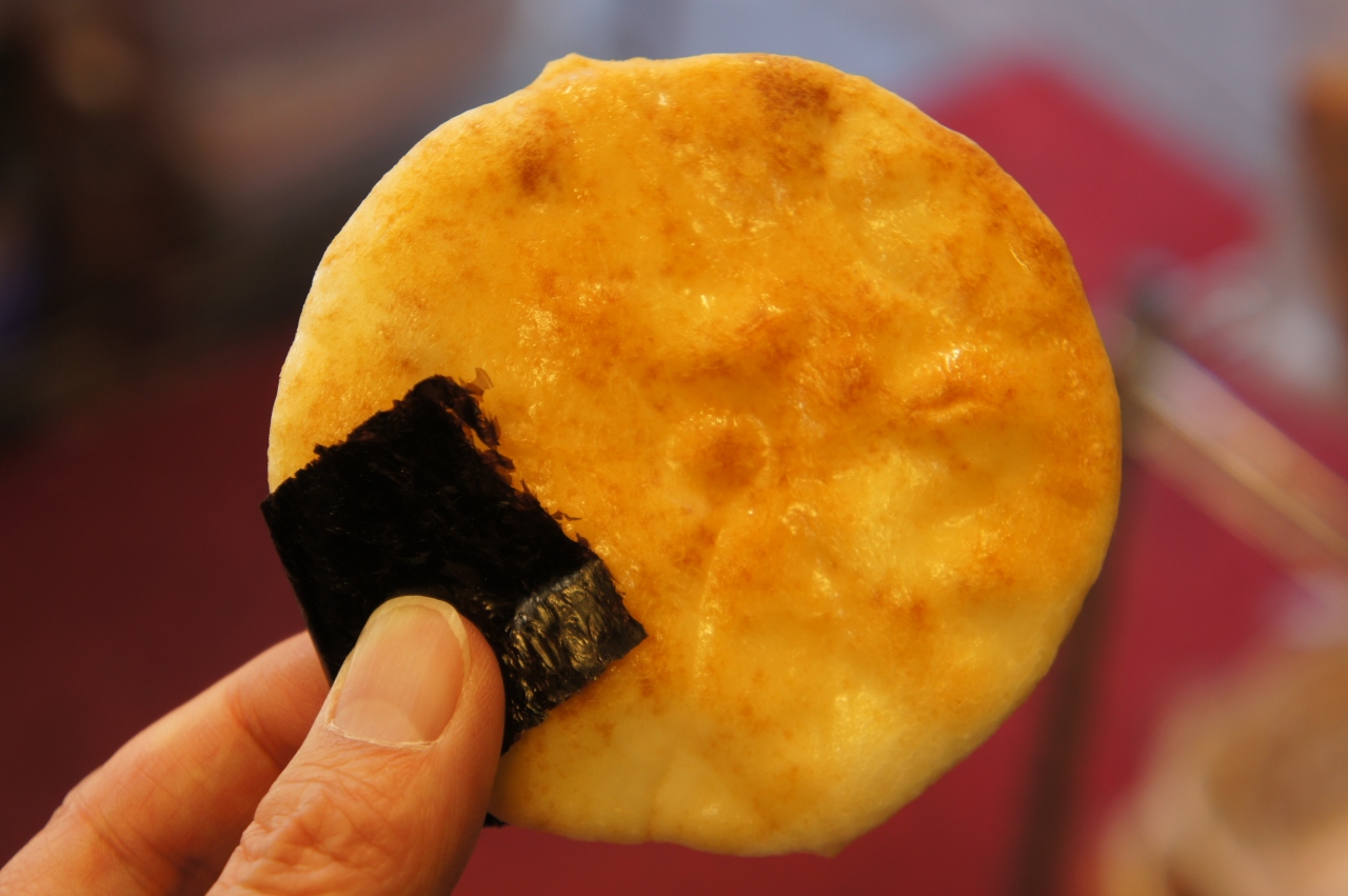 鎌倉壱番屋は、小町通りの中ほど。オープンな店構えと山と積まれた商品に惹かれてお客さんが次々寄って行く人気店です。私もつられて焼き立てせんべいをいただきました。煎餅が持ちやすいように小さな海苔を付けてくれるのが新味ですが、まあ味は何と言うことはないかと思います。