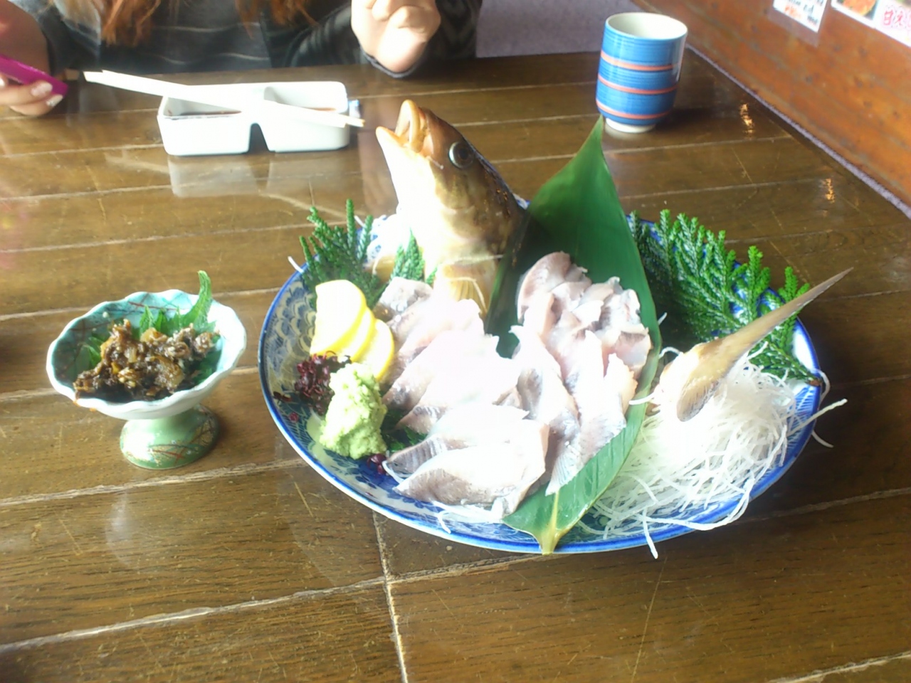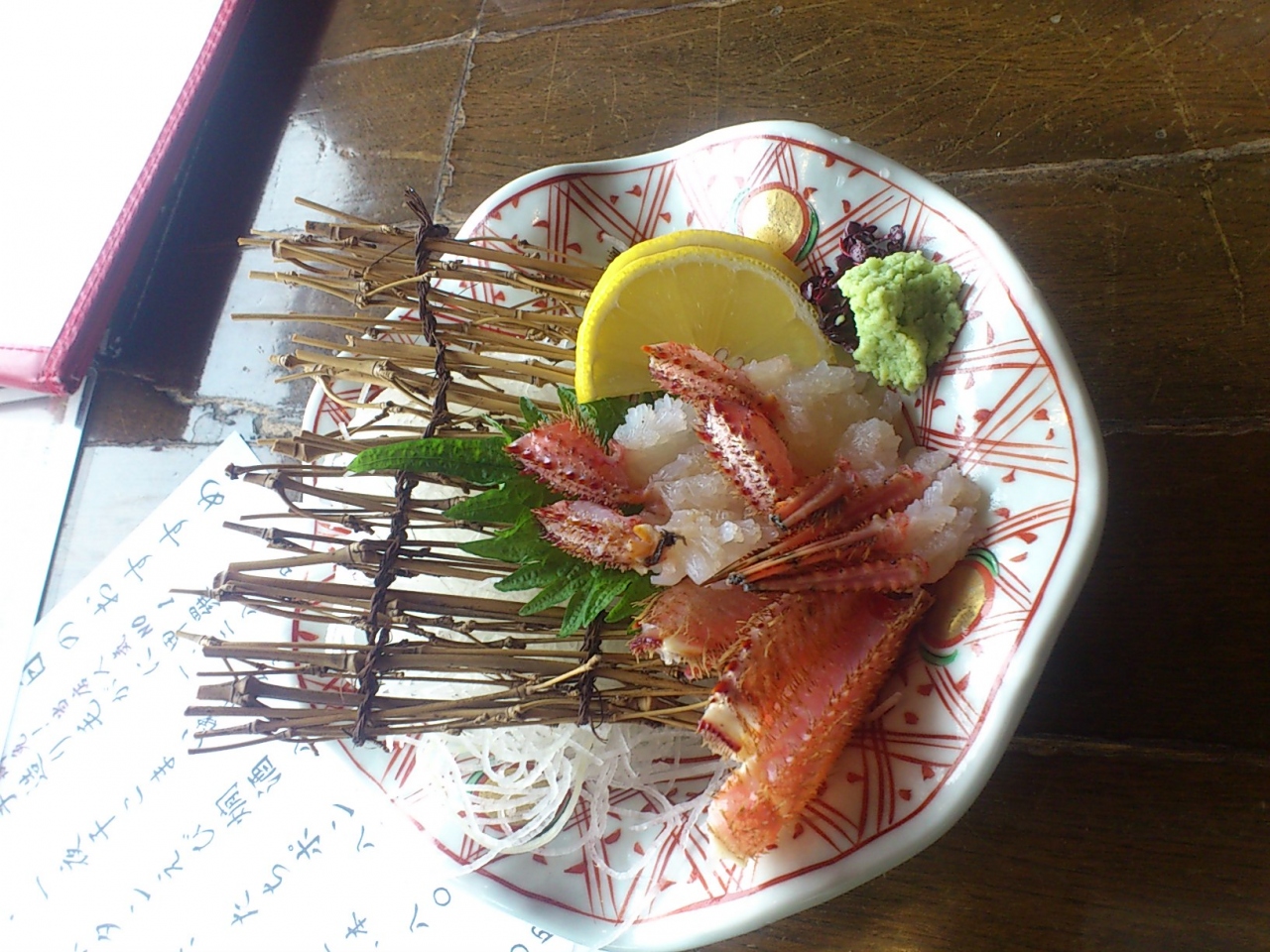 函館旅行初日の13時に函館朝市に行ったが、ゆったりと料理、酒を食する場所がなくふらふら散策していると、たまたま暖簾が掛かっており、お客さんが誰1人居なかったものの入店した。店内には生簀があり、折角、北海道まで来たのだからとホッケと毛蟹の刺身を注文した。ホッケの刺身はグラム売り、毛蟹の刺身は大を注文(添付写真のとおり)し、ゆっくり日本酒を吞みながら娘と歓談していたが、14時に一旦閉店すると従業員に声を掛けられた。これからが本番なのに~僅か1時間で店を出る事に(泣)・・・いきなり残念!